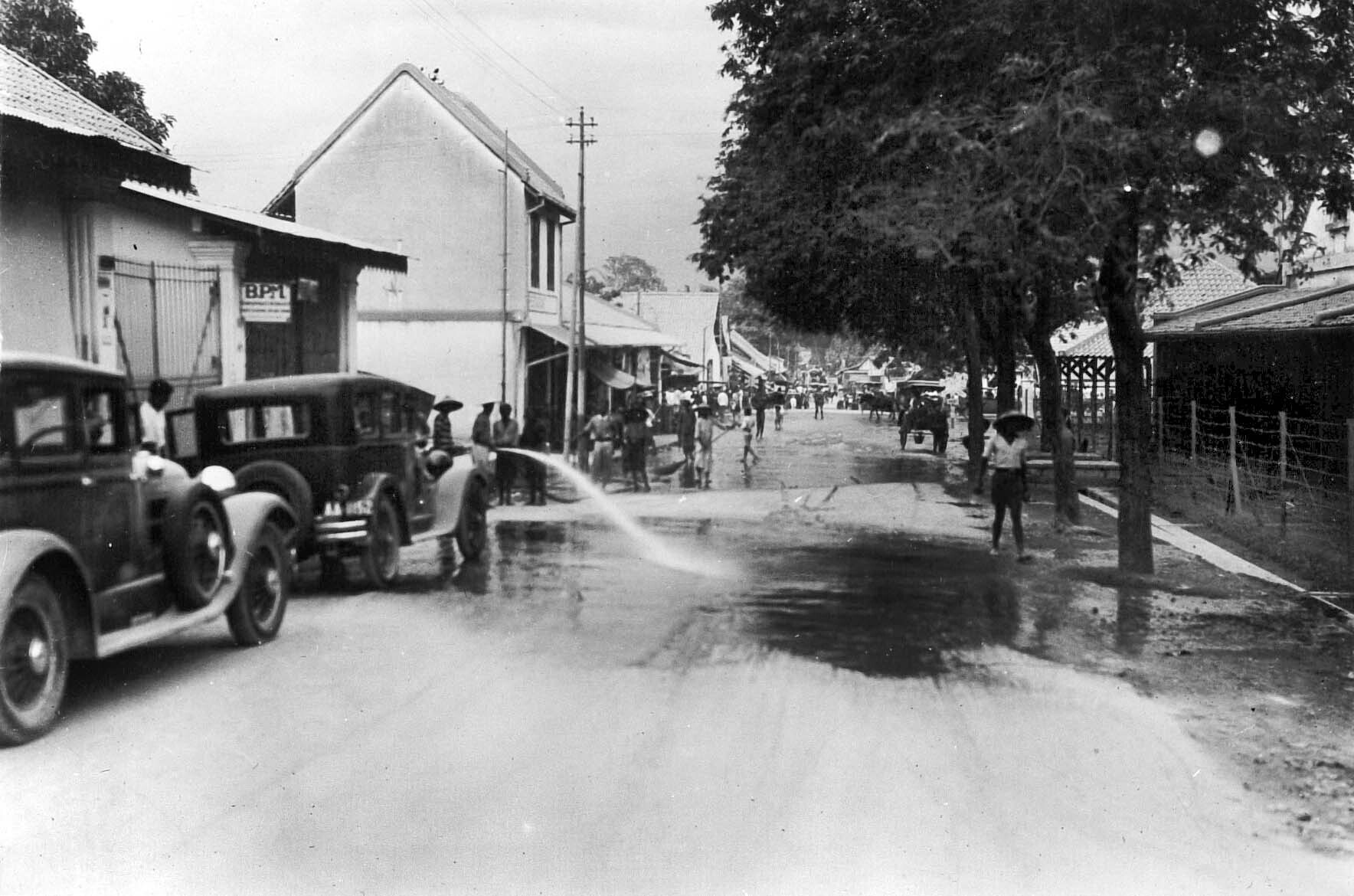 De brandweer maakt de straten van Magelang schoon na...
