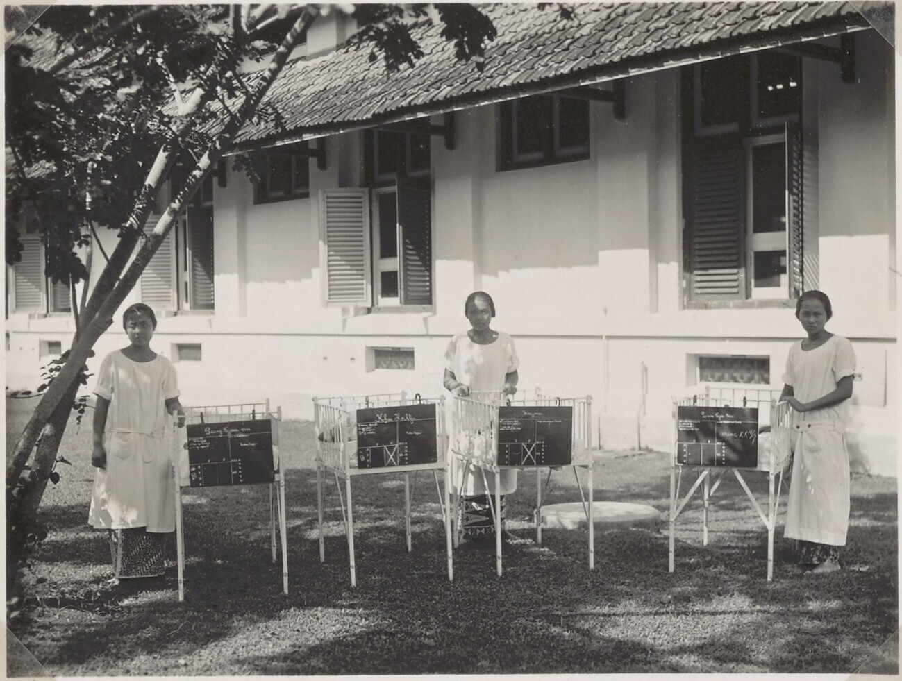 Patients in the open air with nurses of the Children...