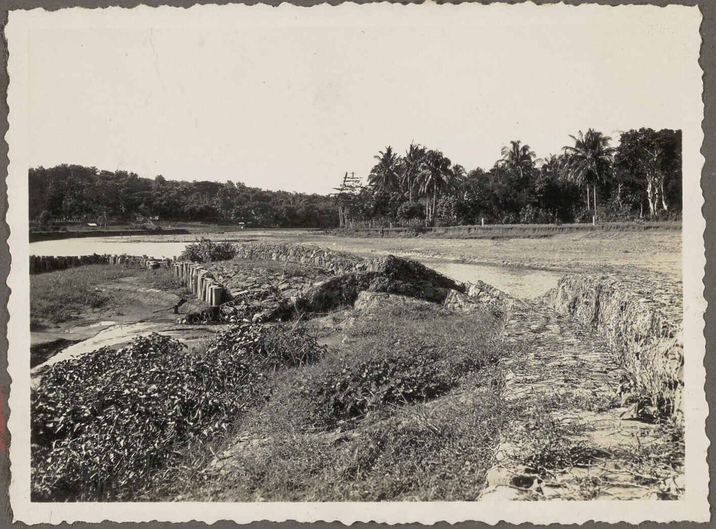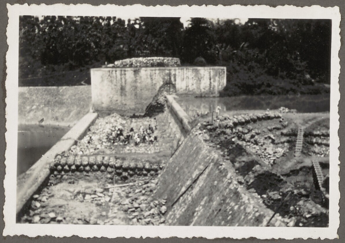 Gezicht op de toestand van de oeverversteviging bij ...