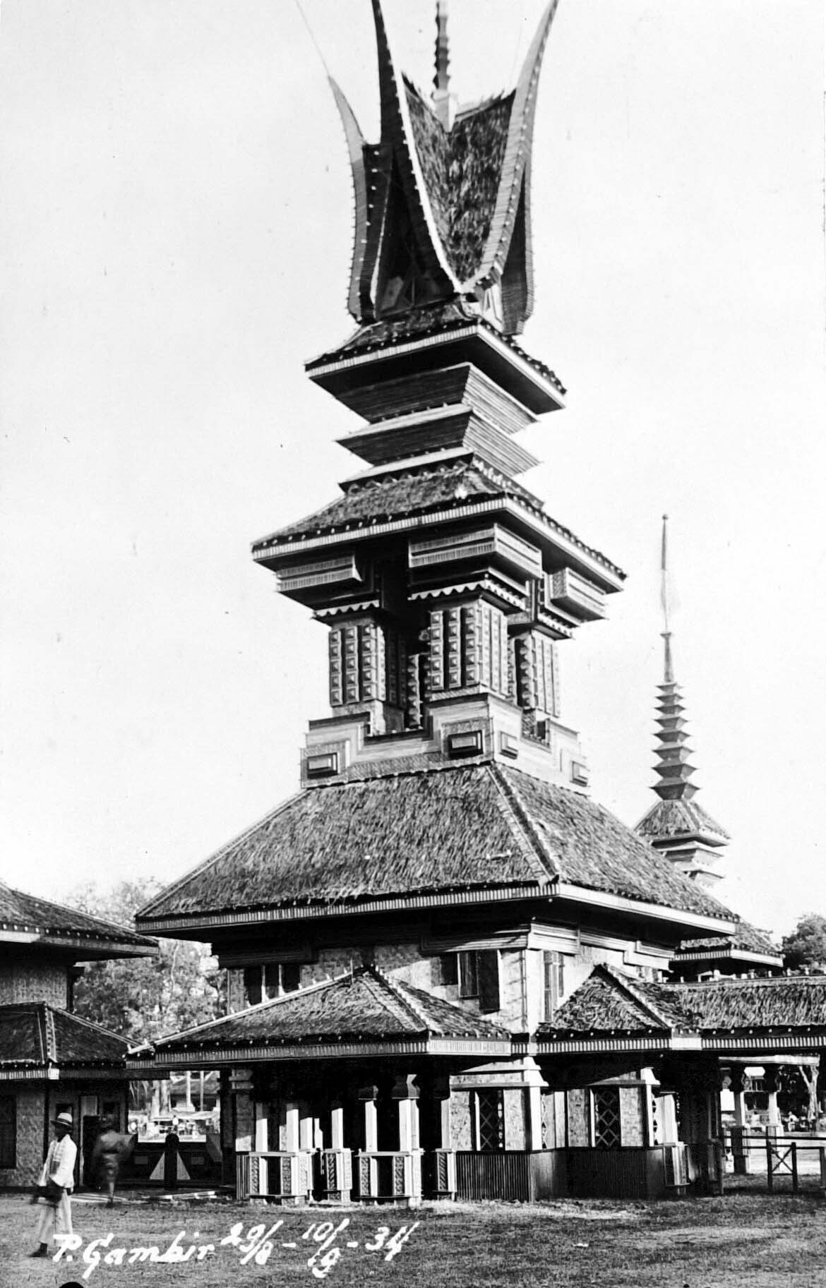 Hoofdingang van de jaarmarkt 'Pasar Gambir' van 1934...