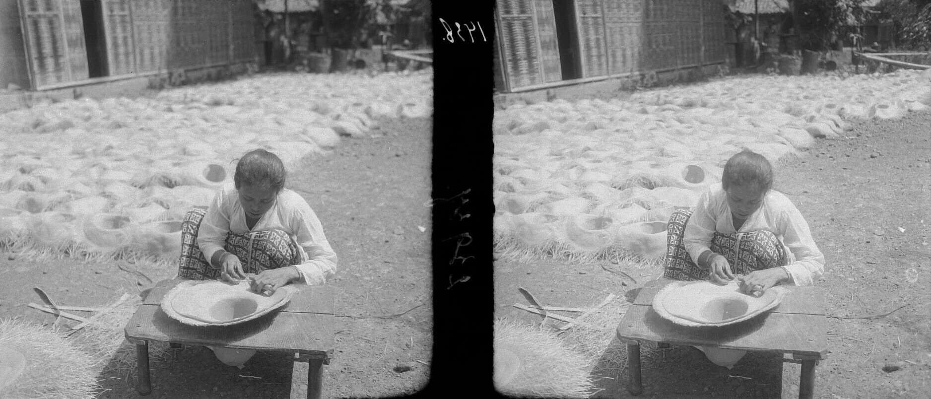 Het vlechten van hoeden van bamboe in Tangerang