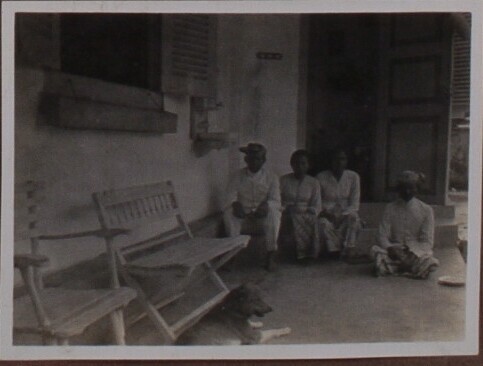 Javanen met hond op veranda Van Huize Minie