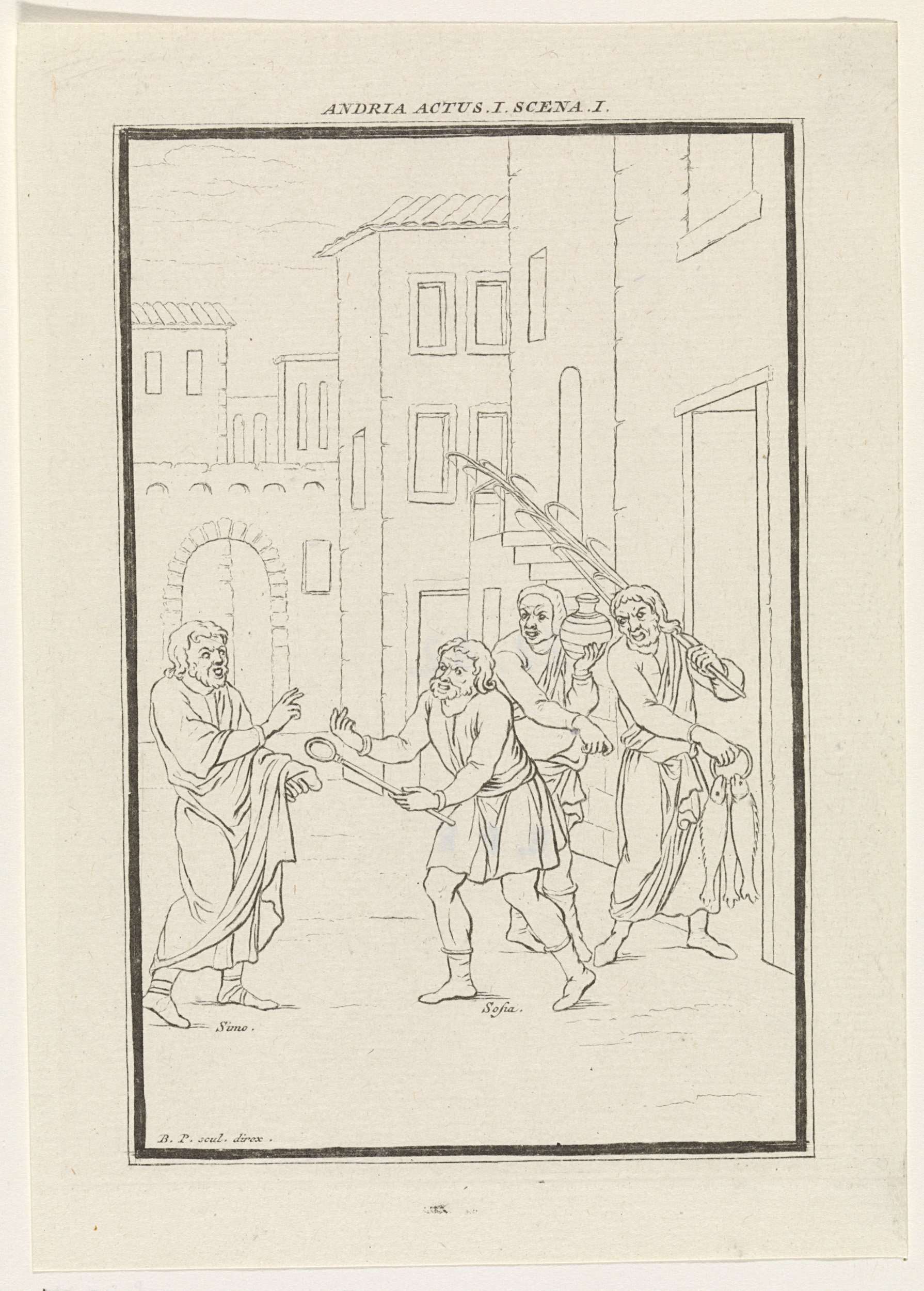 Scène uit de komedie Andria van Terentius