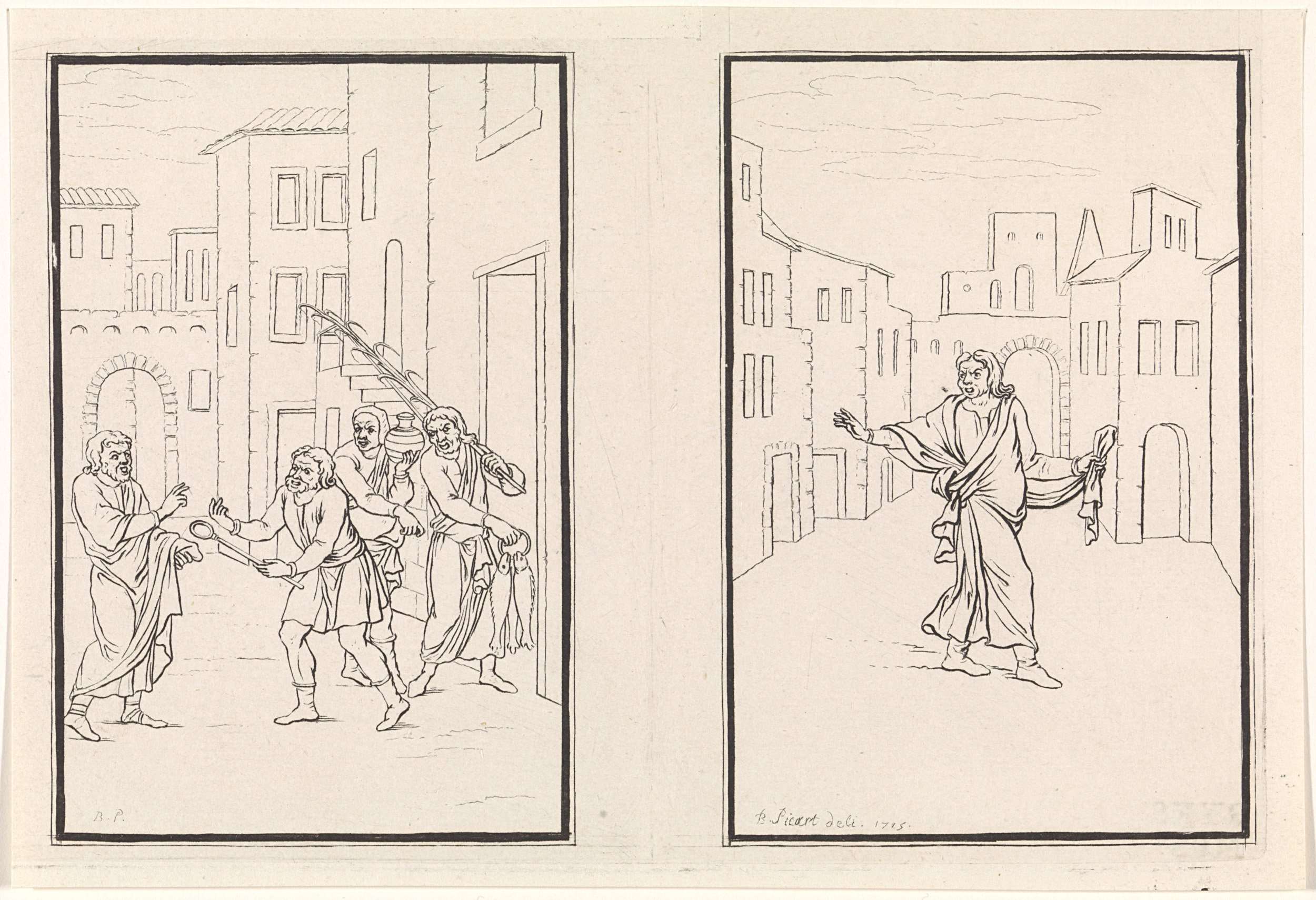 Twee scènes uit de komedie Andria van Terentius