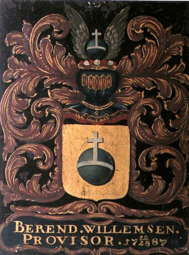 Houten gevelbord met "1778", met gekroond wapenbord ...