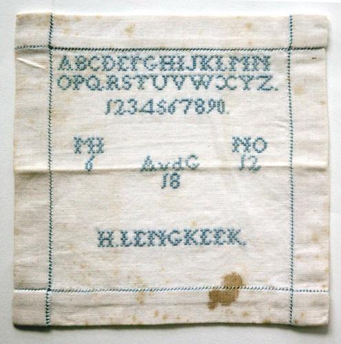 Merklap Oefenlap borduurwerk op katoen. H.LENGKEEK