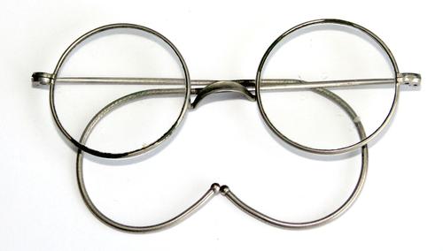 Bril met ronde glazen metaal montuur zadelbrug. 1900