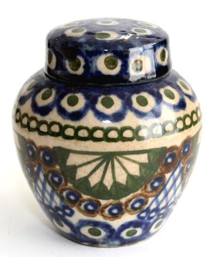 Aardewerk gemberpot beschilderd blauw met groen decor