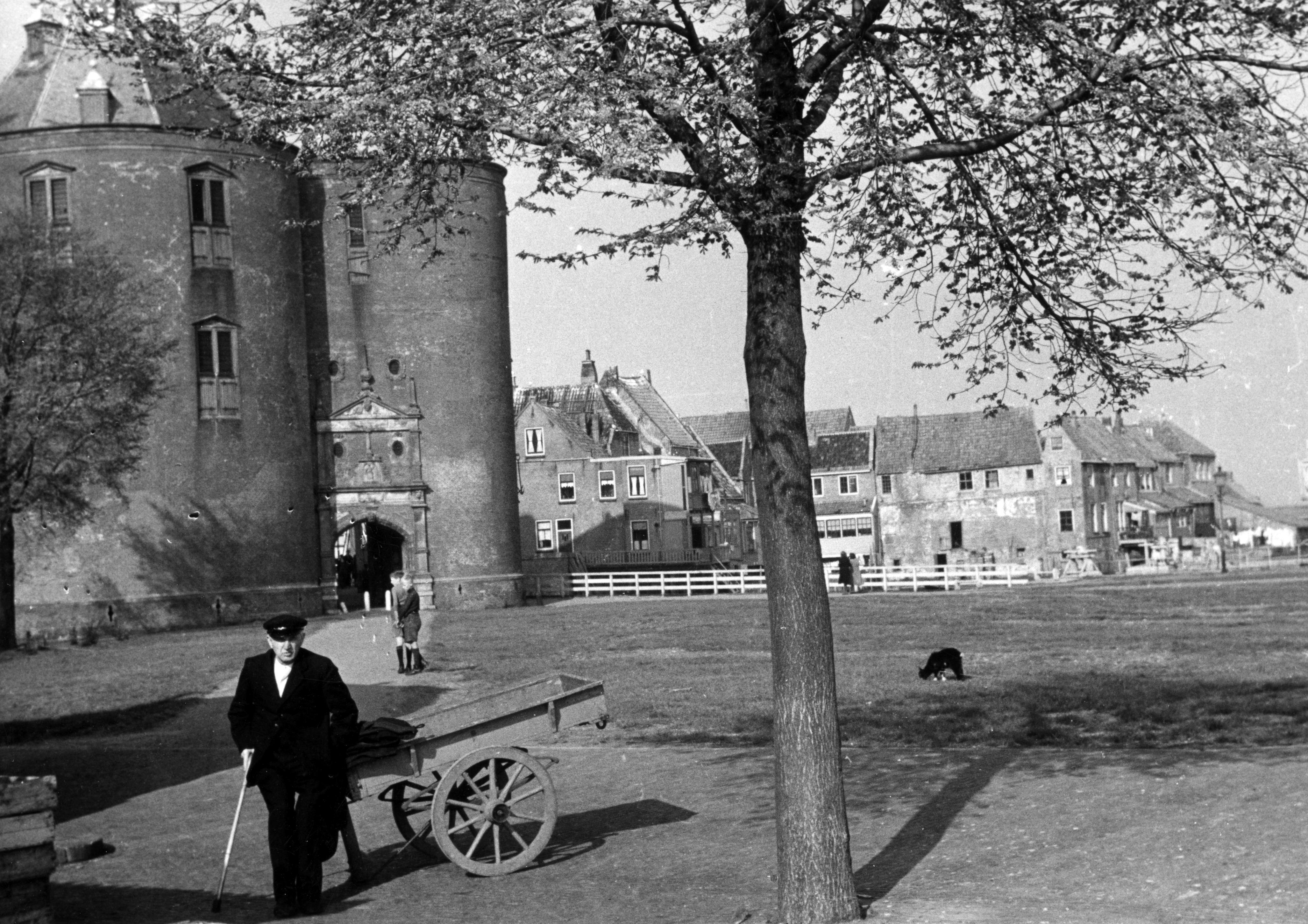 Stadspoort Drommedaris, Enkhuizen, 1942 (zwart-wit f...