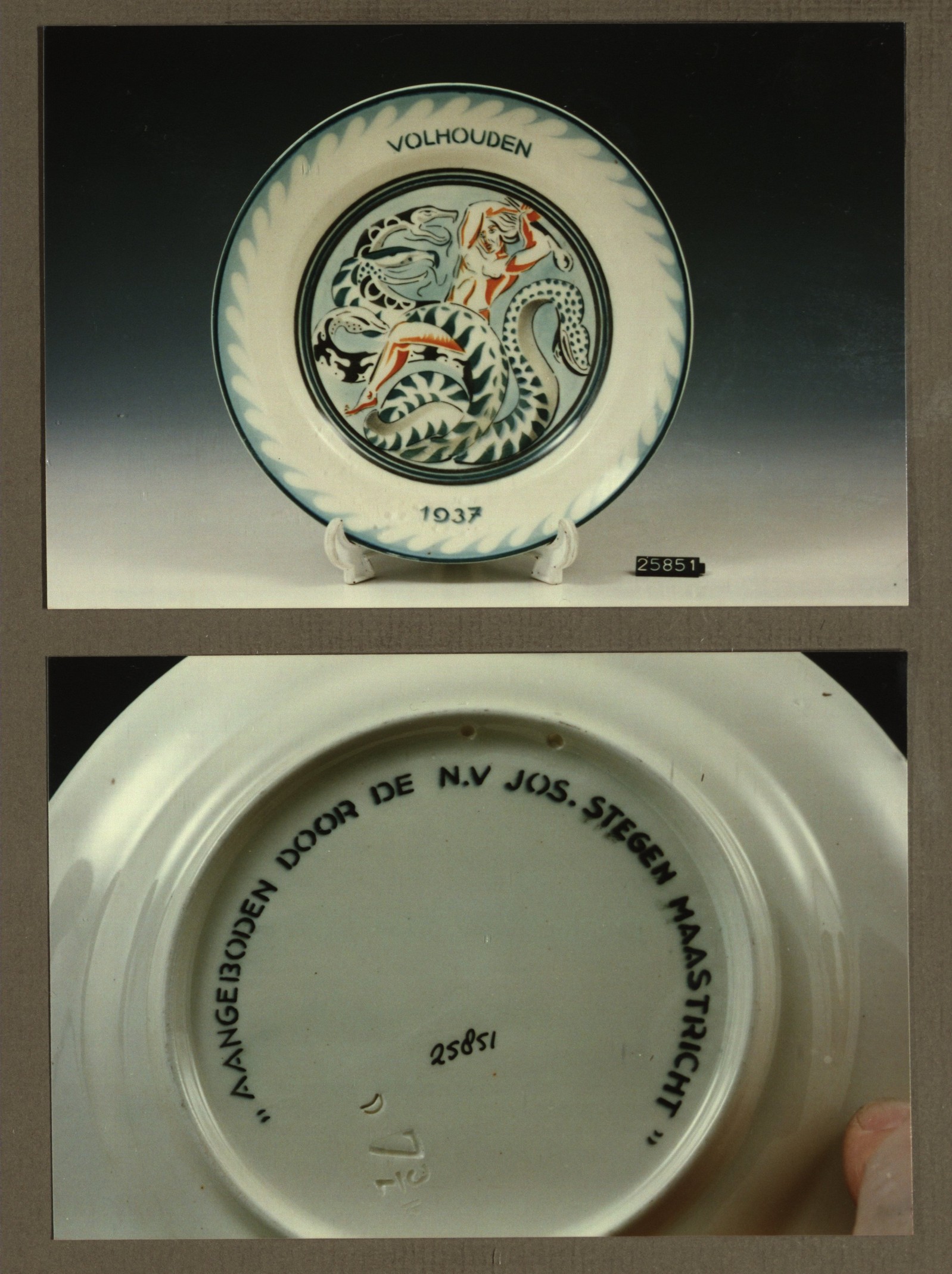 Wandbord met decor Volhouden 1937 Stegen J. Maastricht