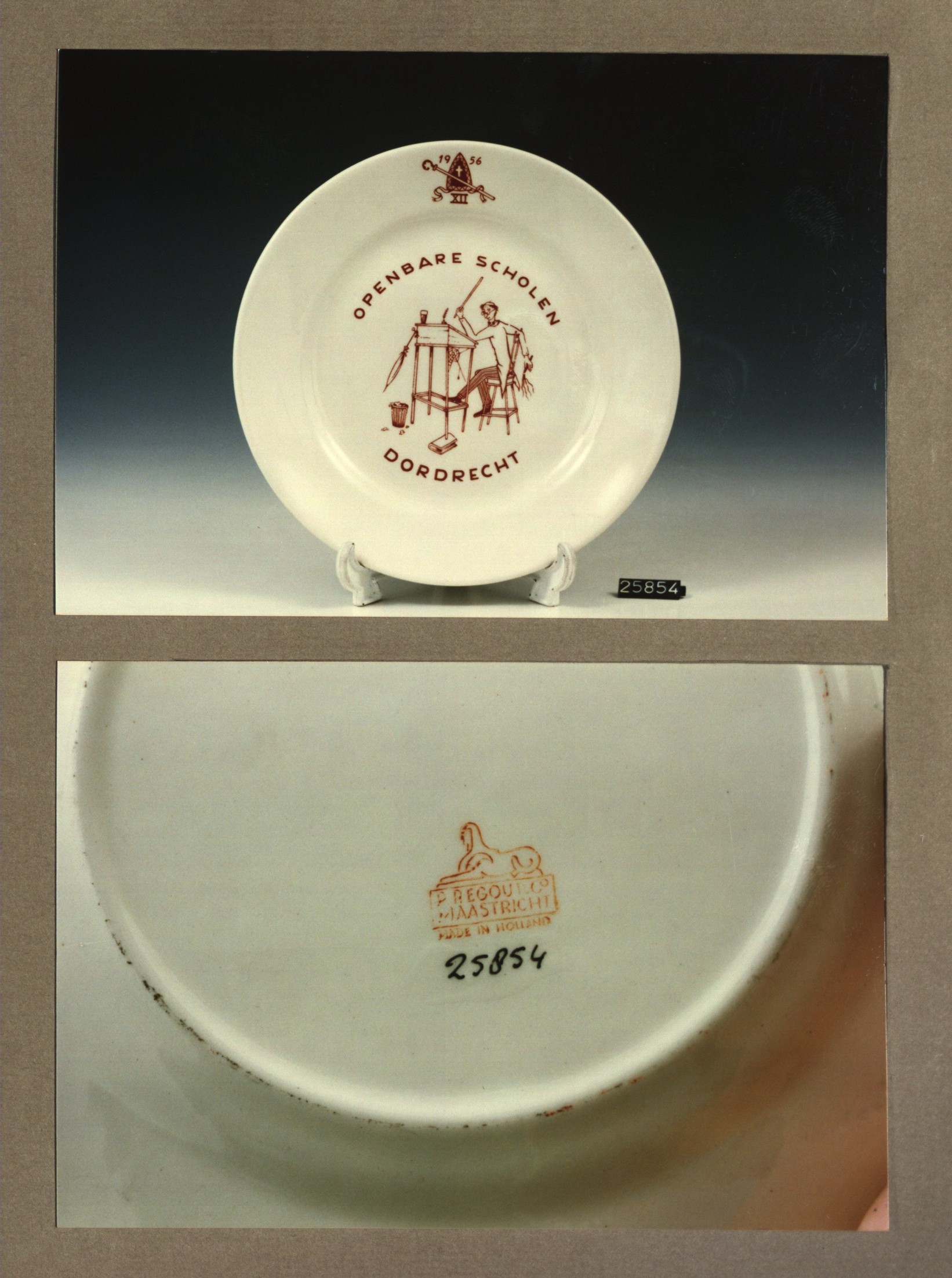 Plat bord met decor Openbare scholen Dordrecht 1956