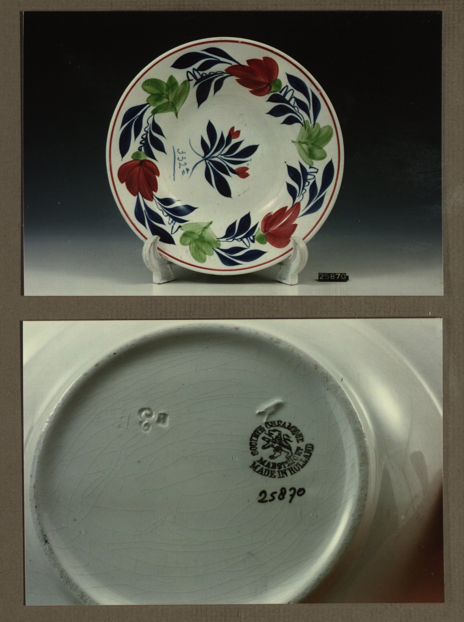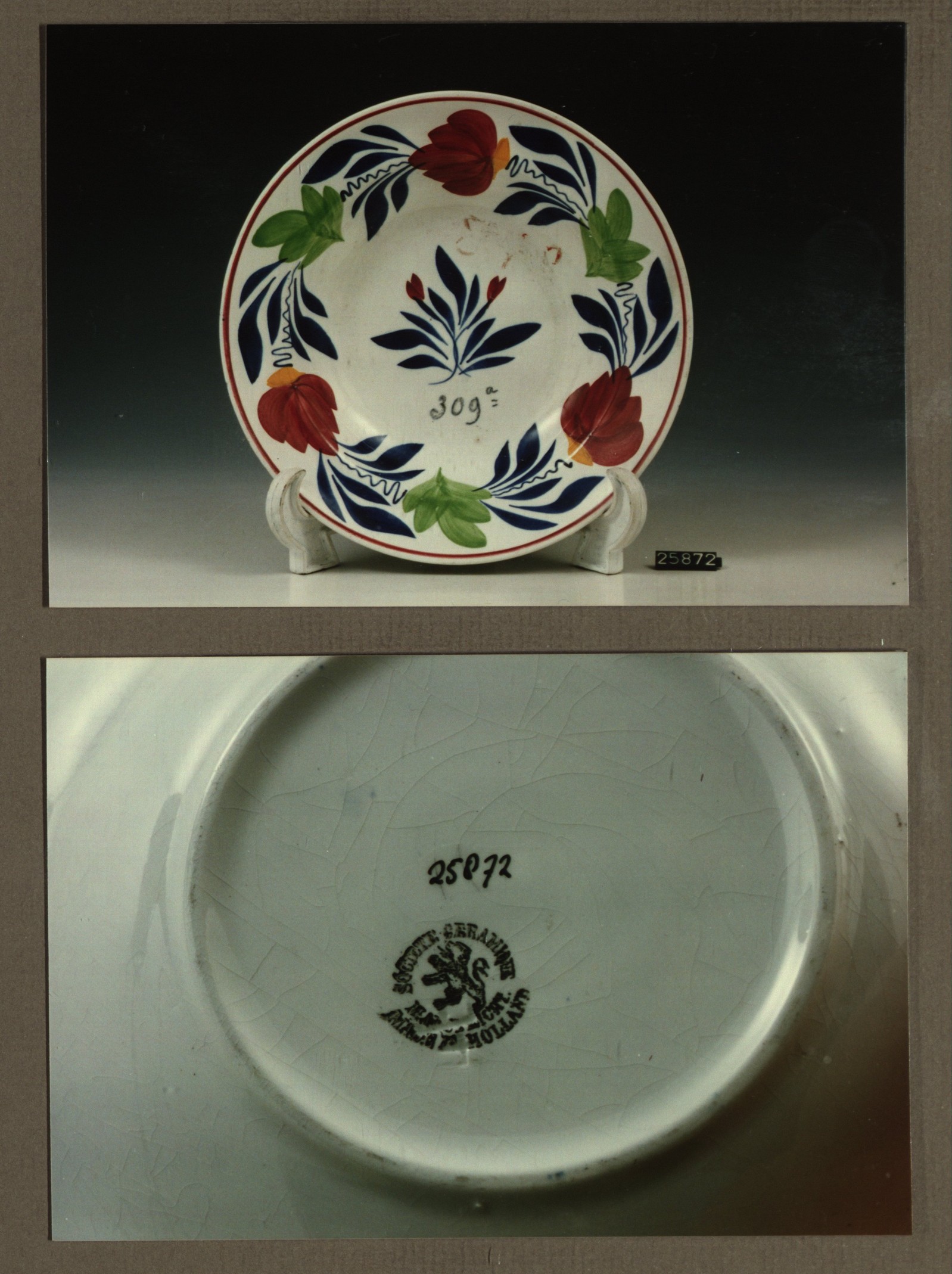 Diep bord, model Belge exp. met decor 309A/M2