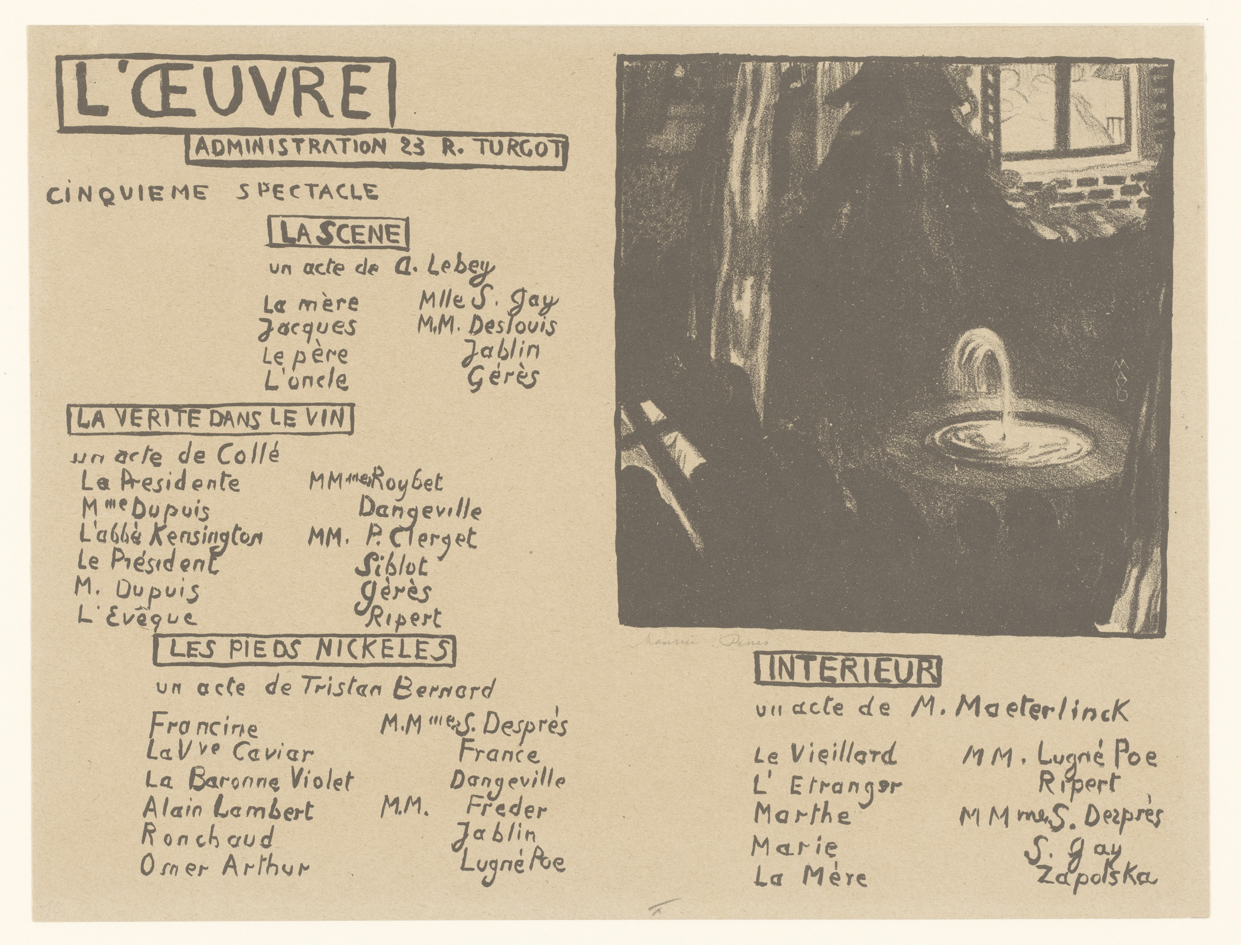 Affiche voor het Théâtre de l'Œuvre met afbeelding v...