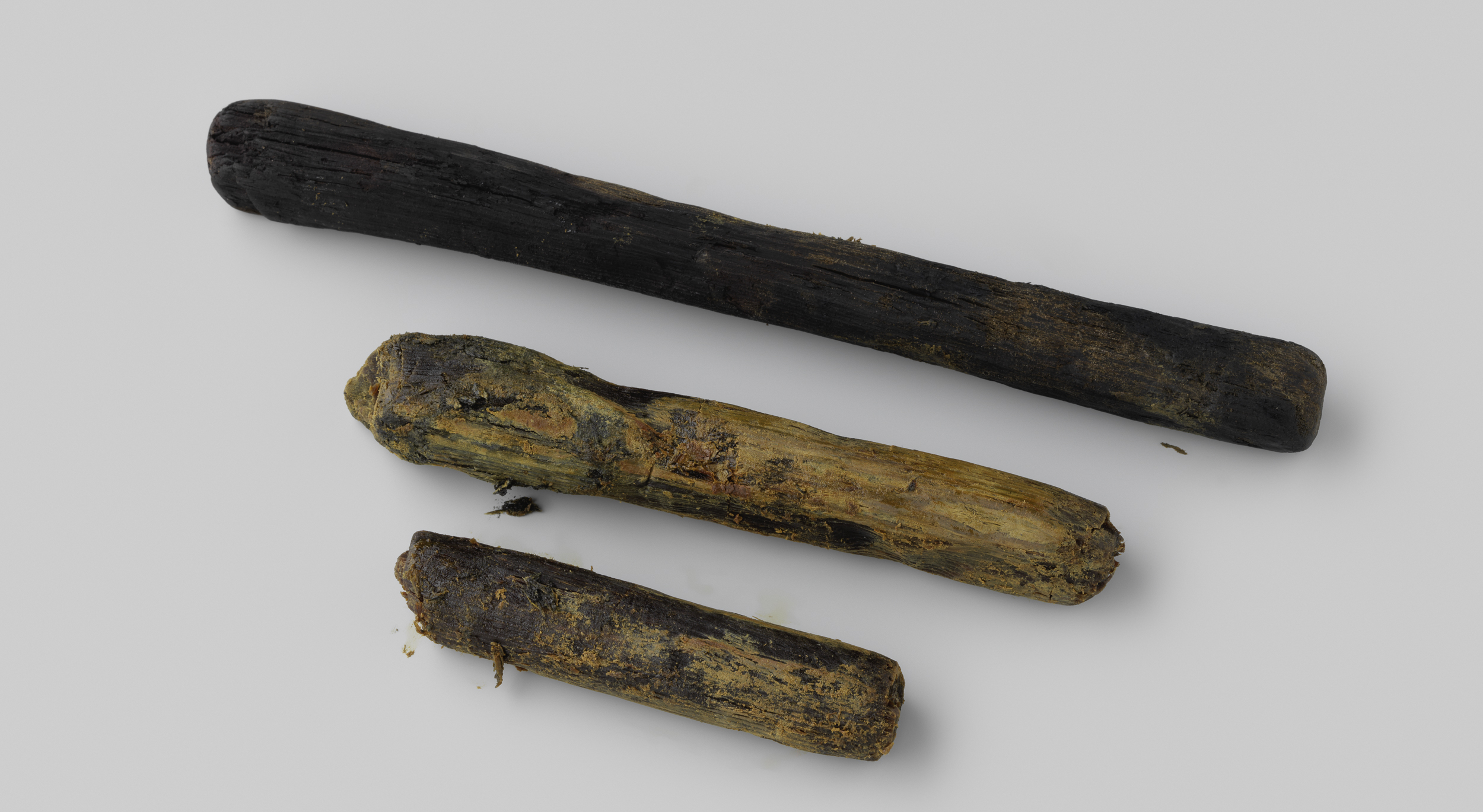 Houten fragmenten of onderdelen uit het wrak van de ...