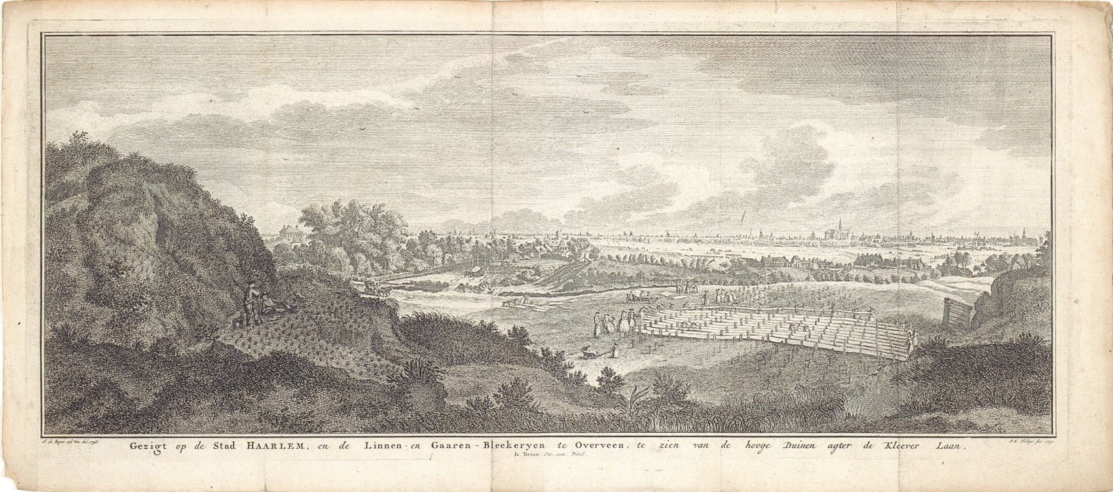 Gezigt op de stad Haarlem, en de Linnen- en Gaaren-B...