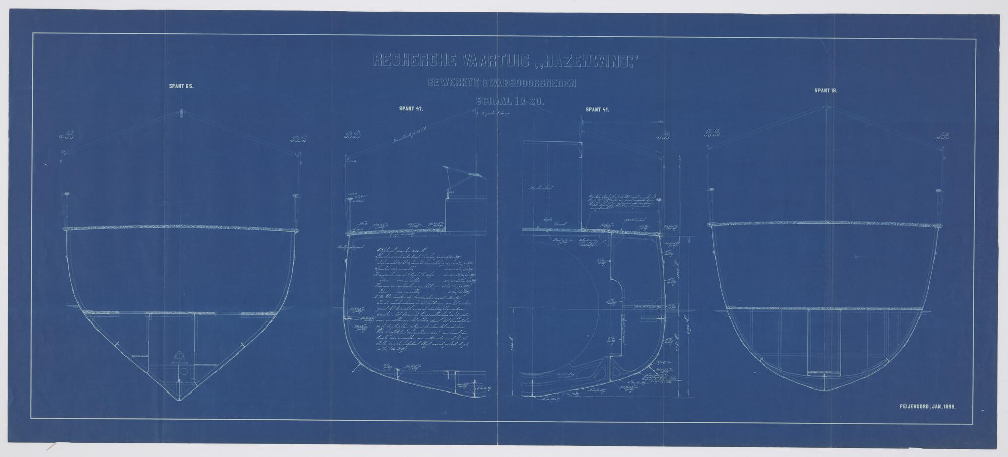 Dwarsdoorsneden over de spanten 18, 41 (halve doorsn...