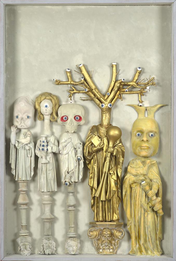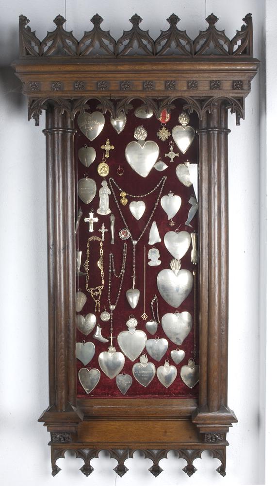 Neogotische kasten met zilveren ex-voto's