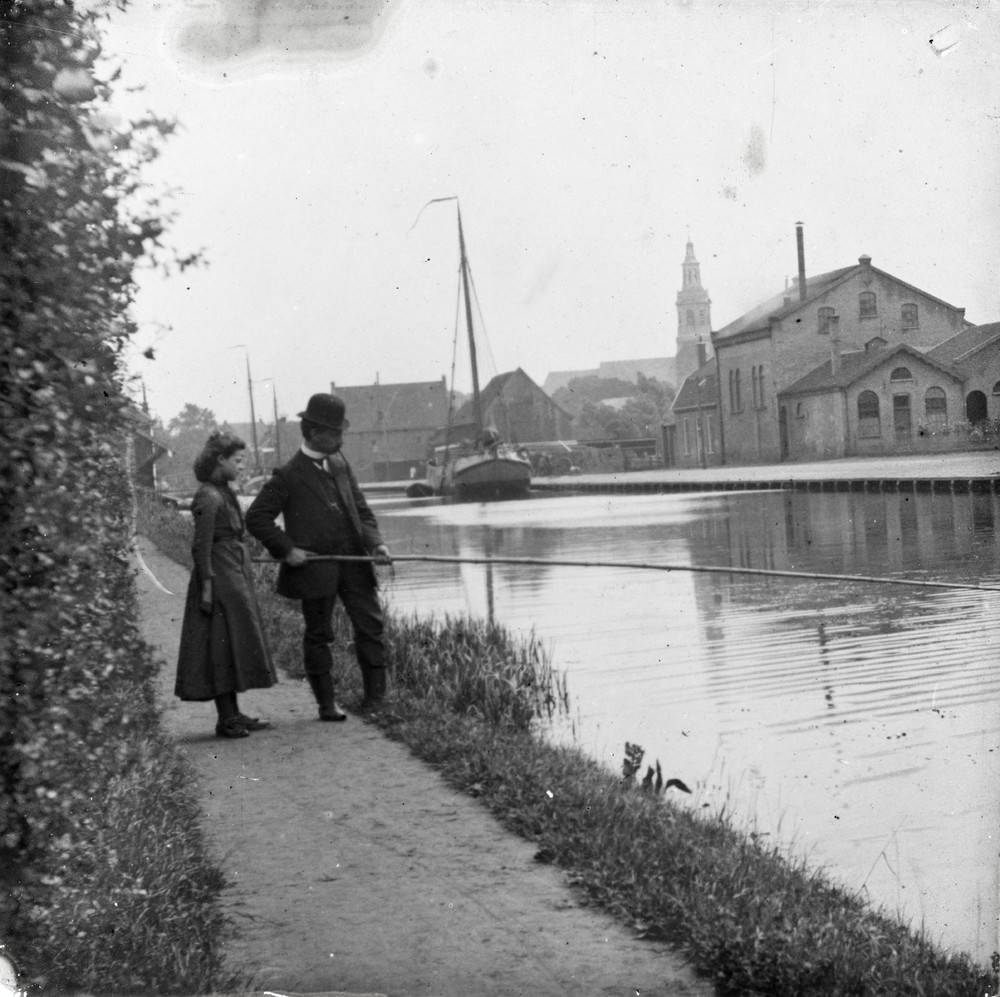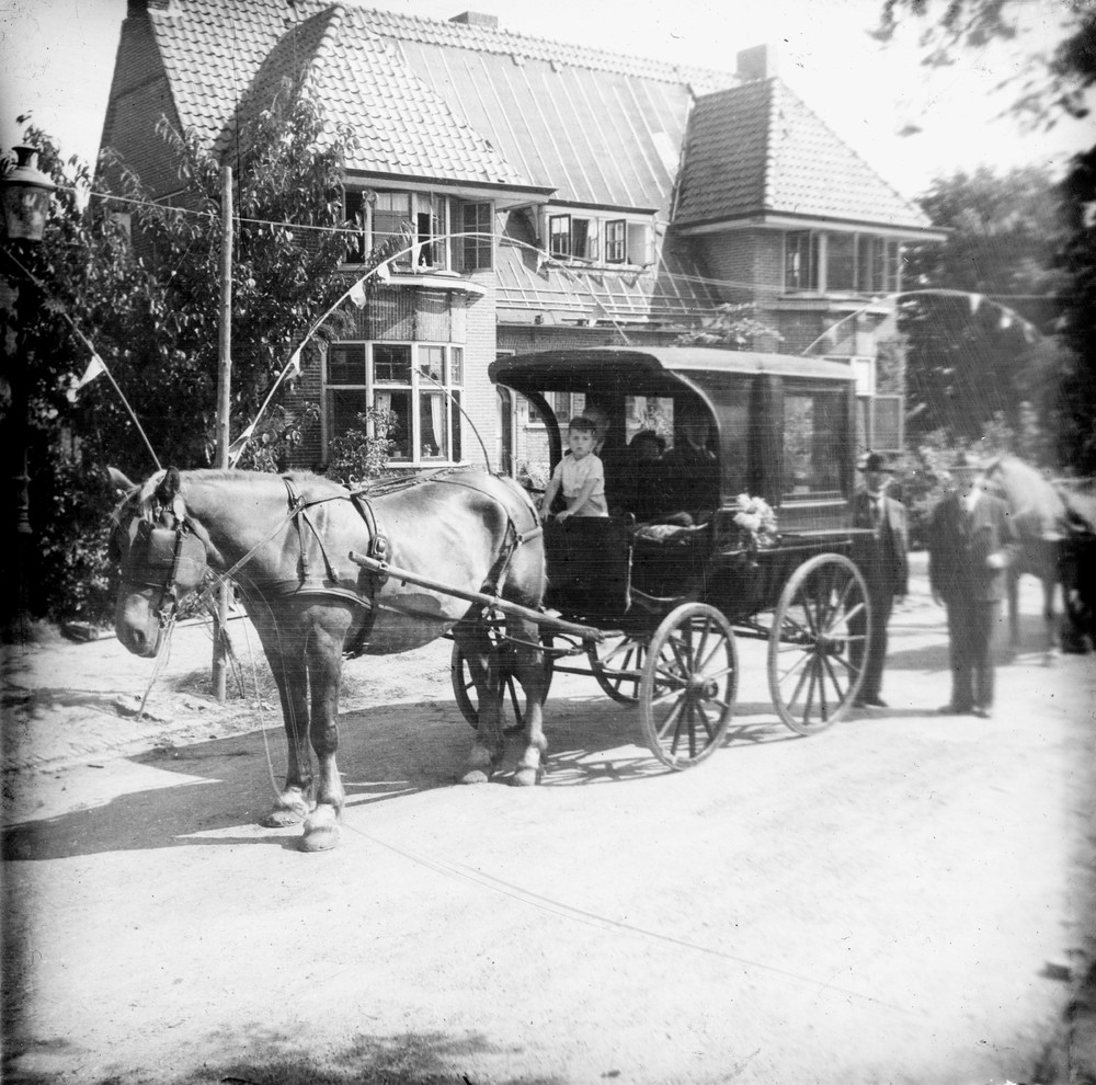 Bruidspaar op de stoep van Huize 'Den Hoek' in Nijkerk