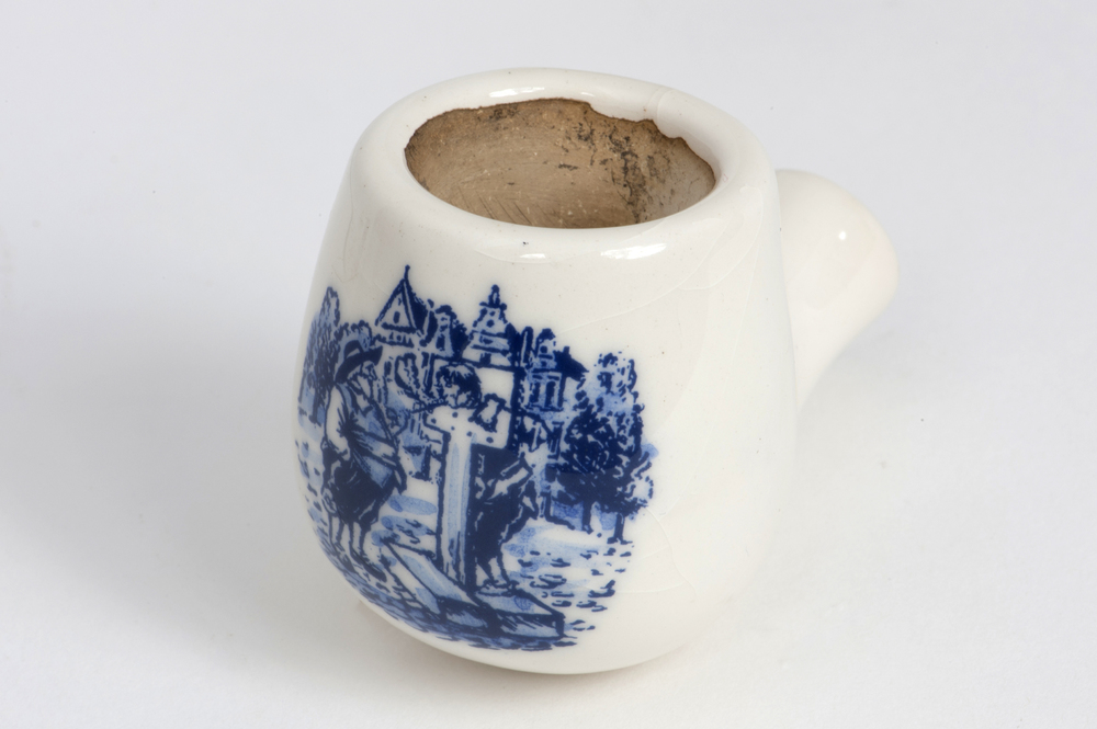 Pijpenkop met daarop een reclame-afbeelding van Van ...