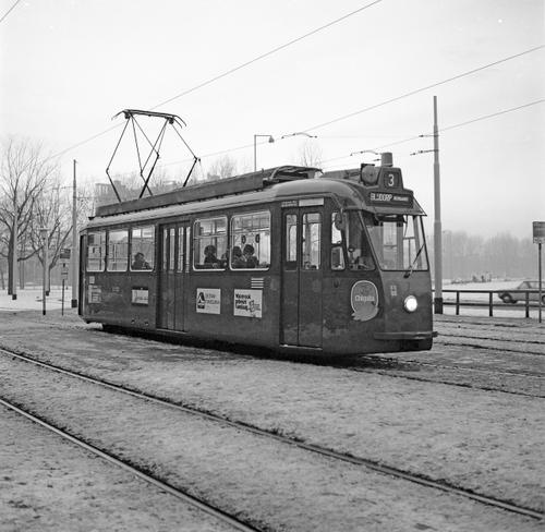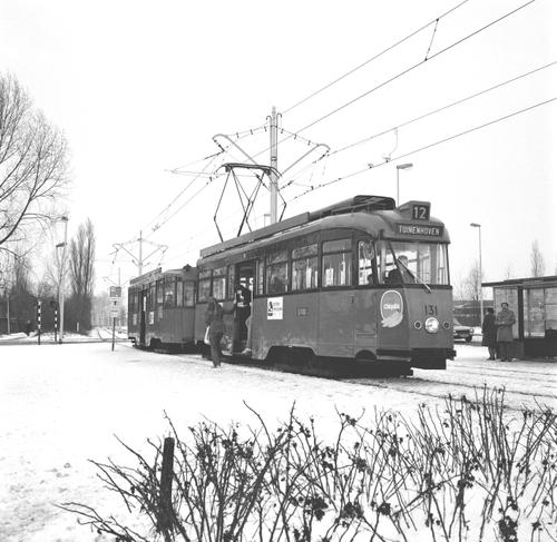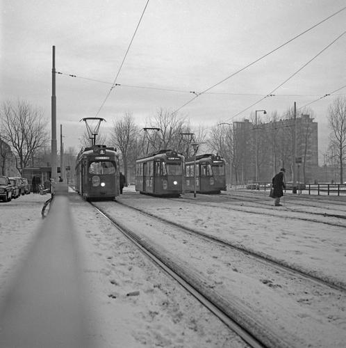 Rotterdam, met Allan-tramstel van de RET in de sneeuw