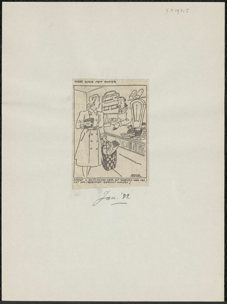 Vel met opgeplakte advertentie: "Wees zuinig met pap...