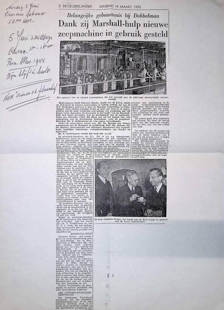 krantartikel, Dankzij Marshallhulp nieuwe zeepmachin...