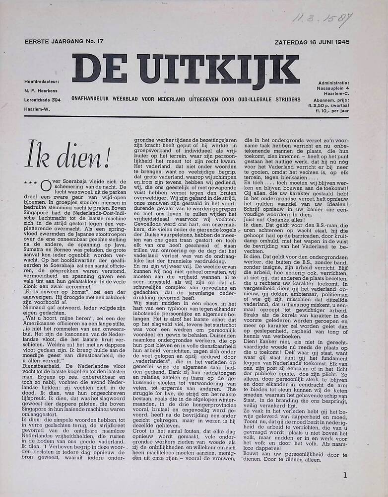 De Uitkijk, 16 juni 1945.