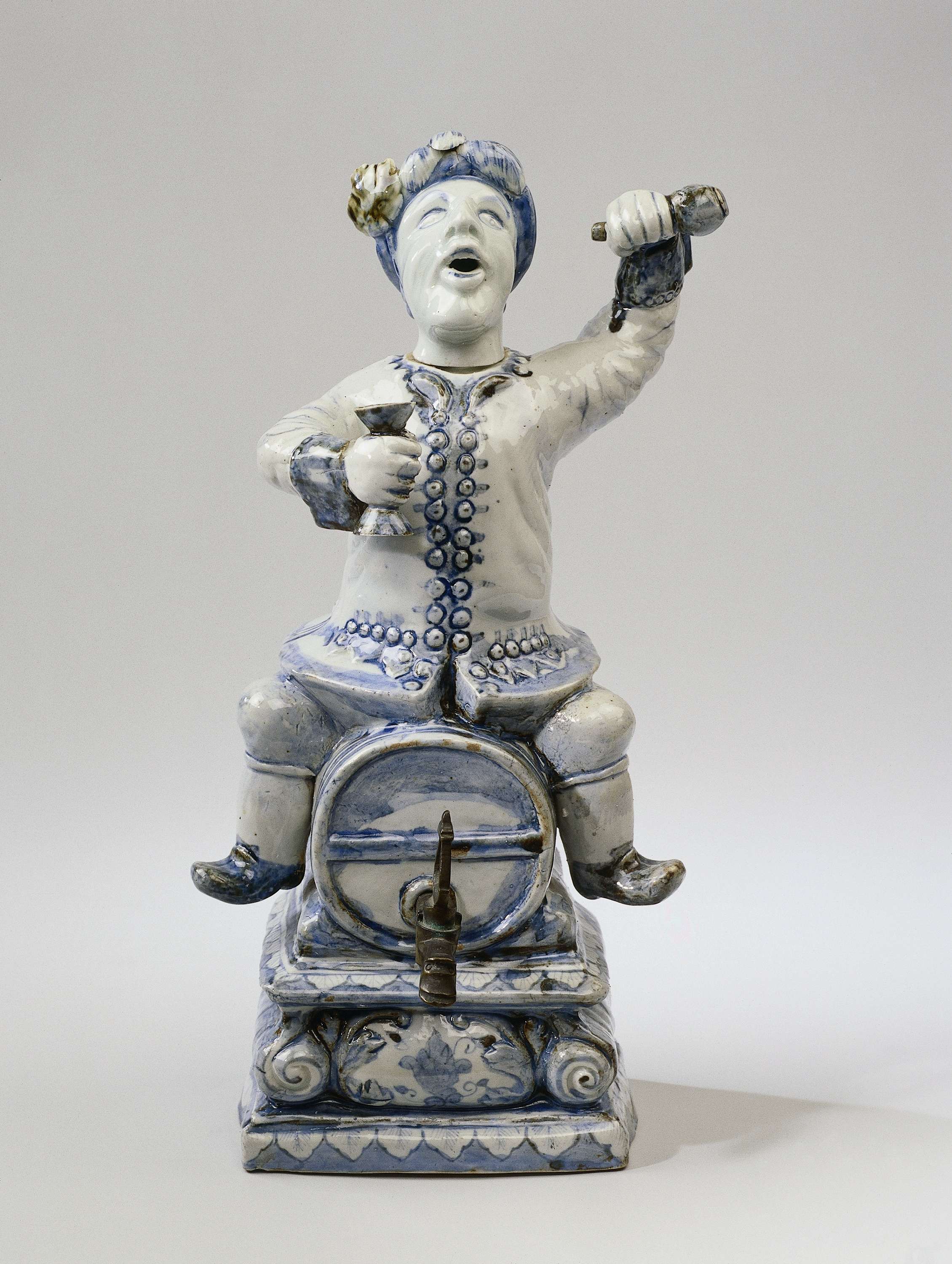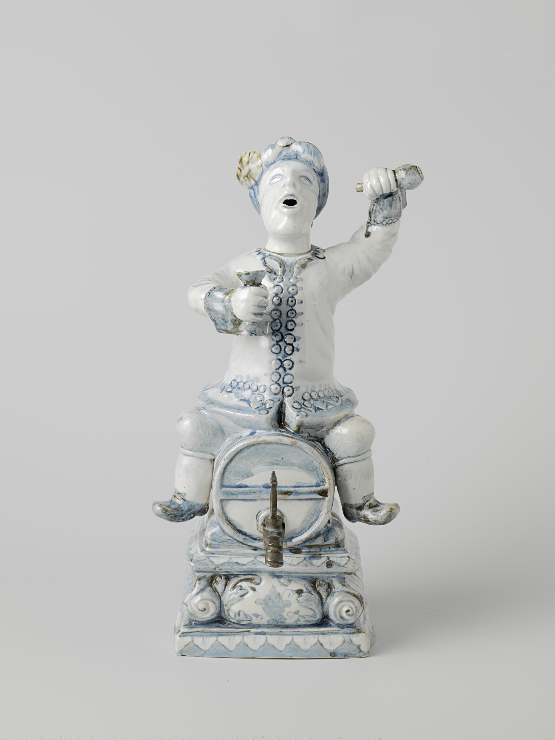 Spirit keg in the shape of a Dutchman sitting astrid...