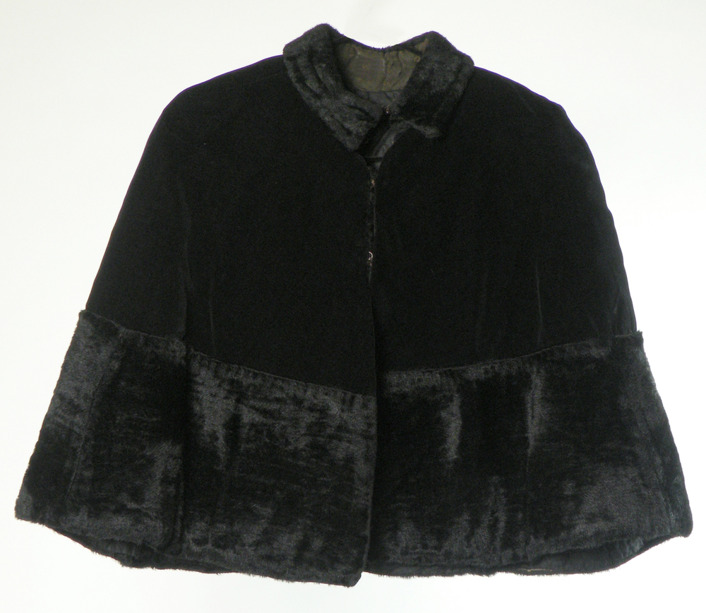Pelerine van zwart fluweel met bont