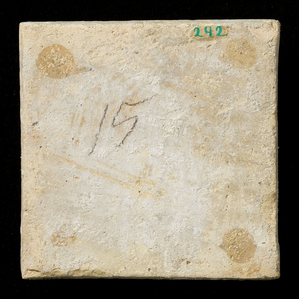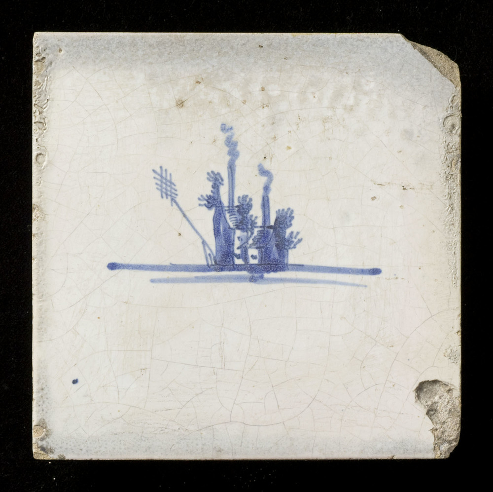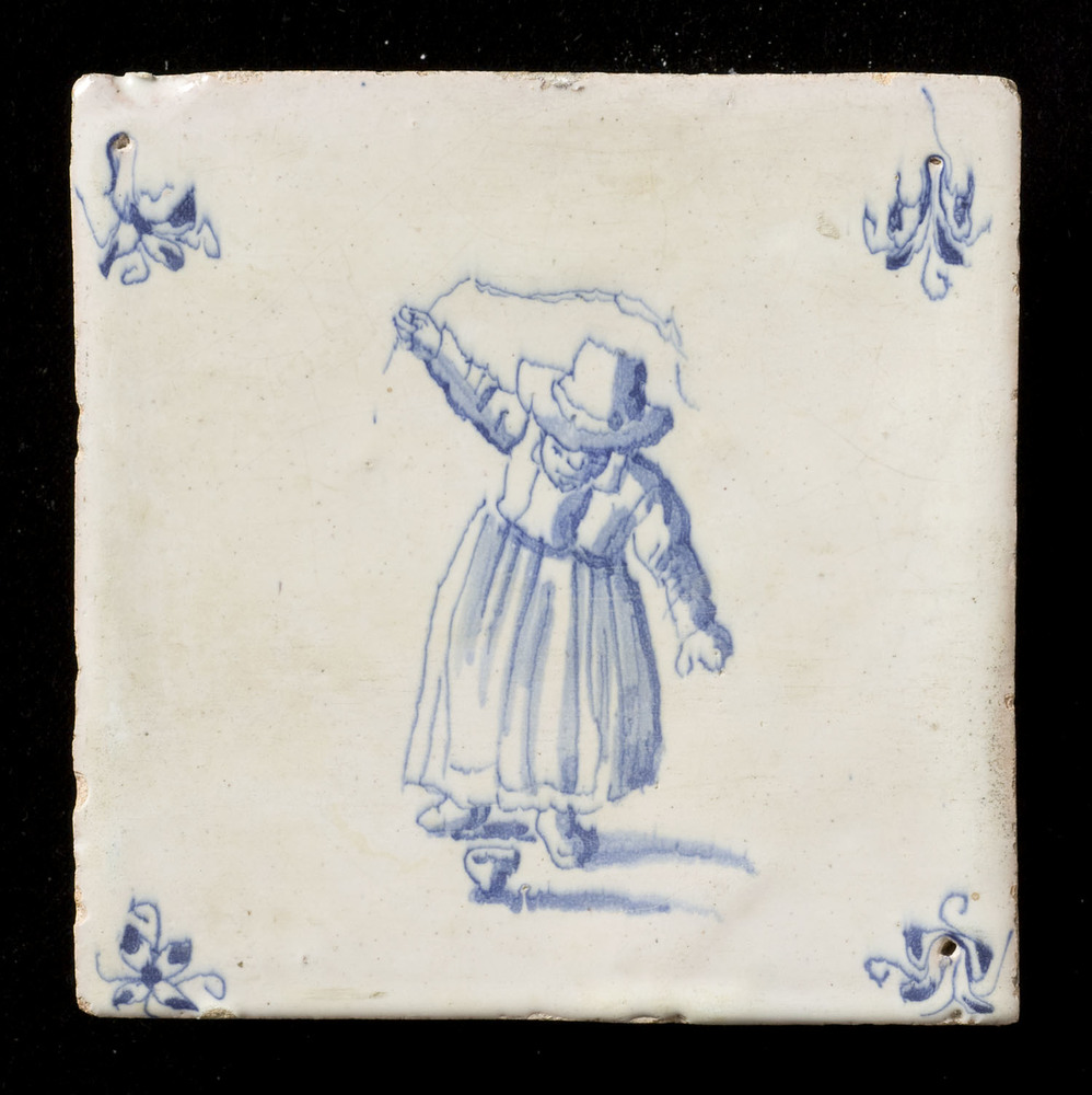 Tegel in tinglazuur, voorstellende tollen, ca. 1625-...
