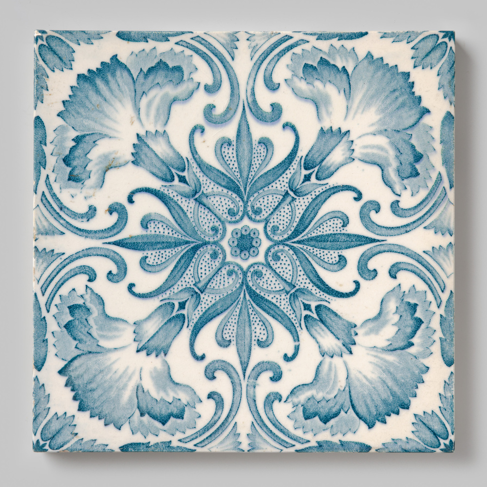 Tegel van keramiek, tinglazuur, voorstellende een bl...