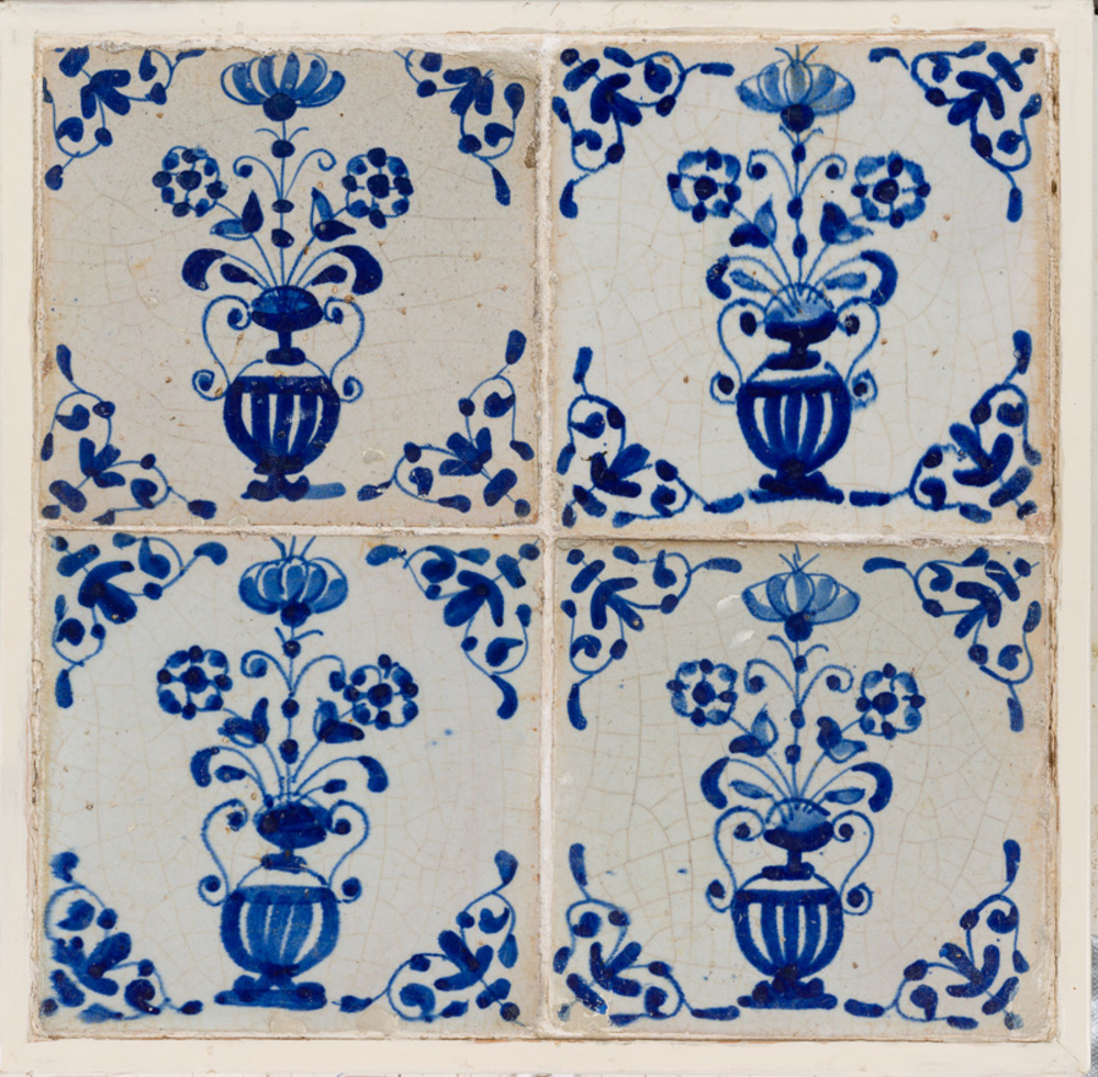 tegelveld van vier tegels van aardewerk in inlegtech...