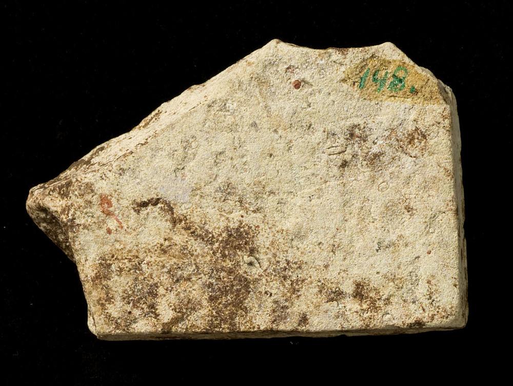 Scherf van keramiek, tinglazuur, voorstellende een c...