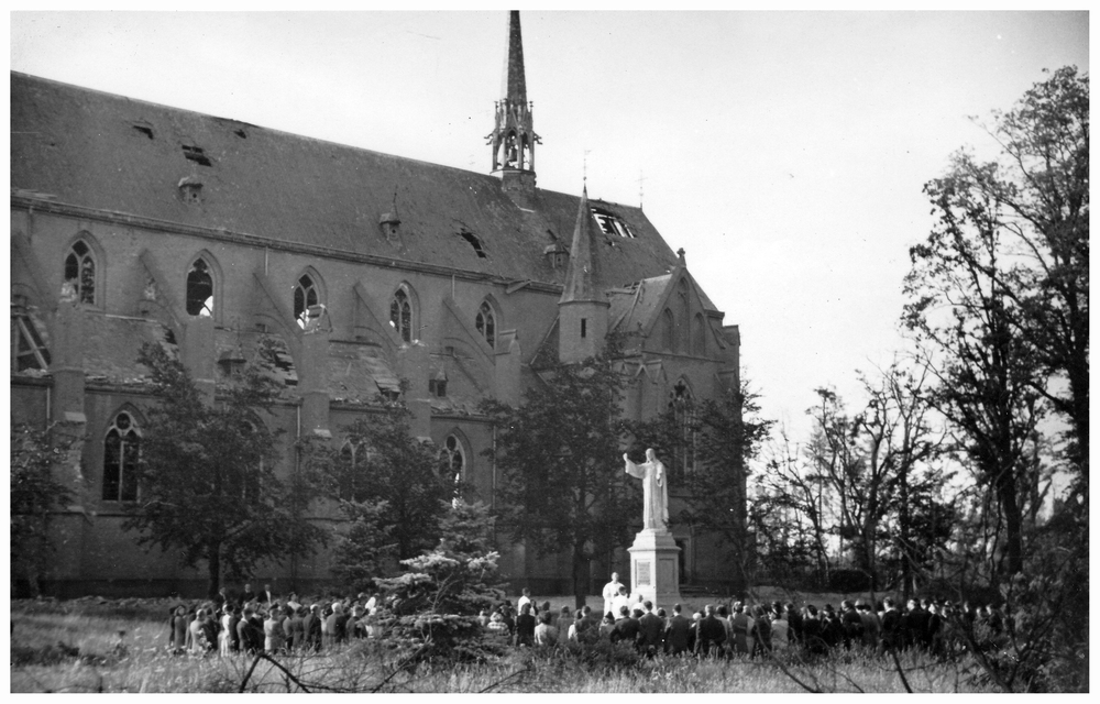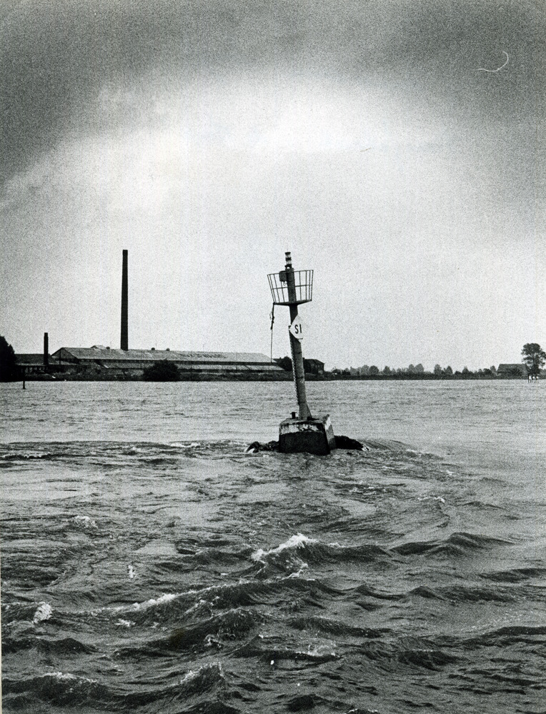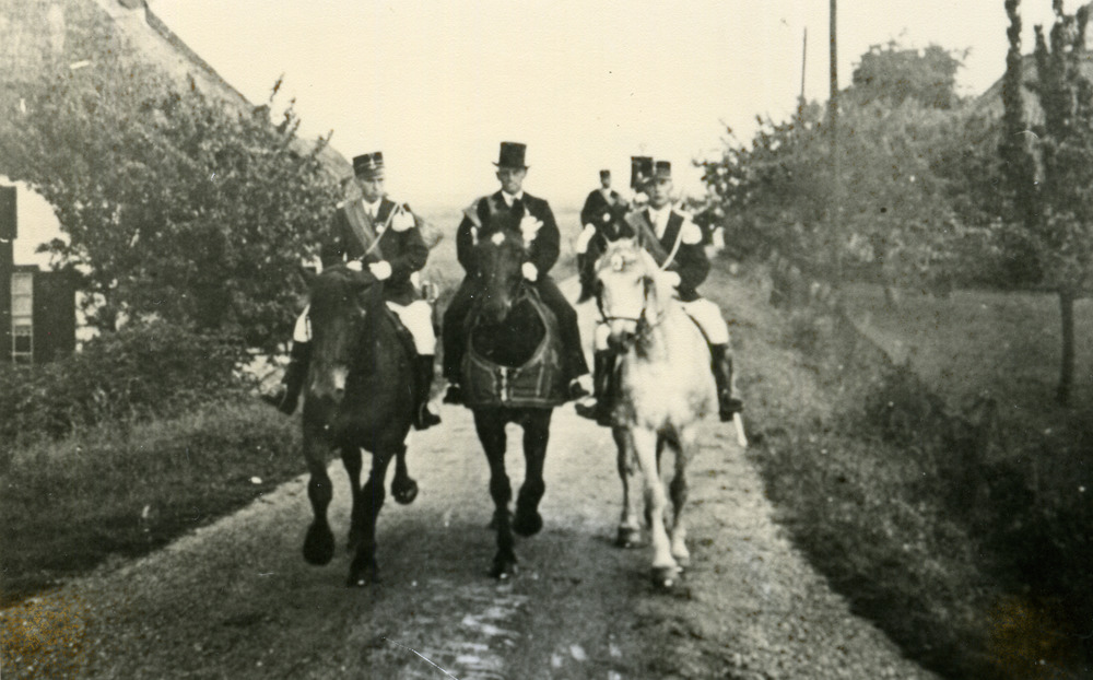Zwart-wit foto van de schutterij op de dijk in Herwe...