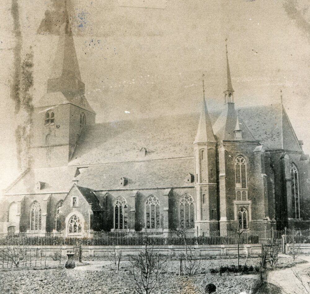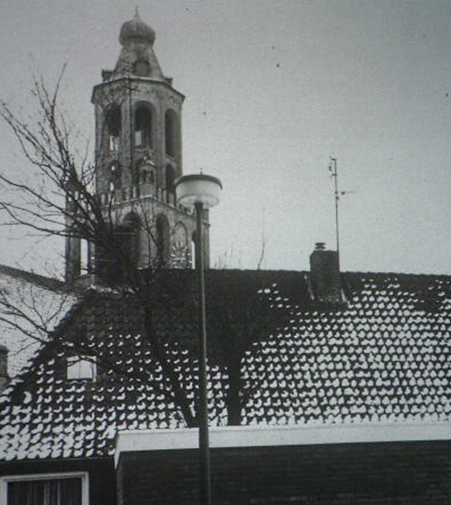 Gezicht op Rk kerk vanaf zuideinde van de Langekerks...