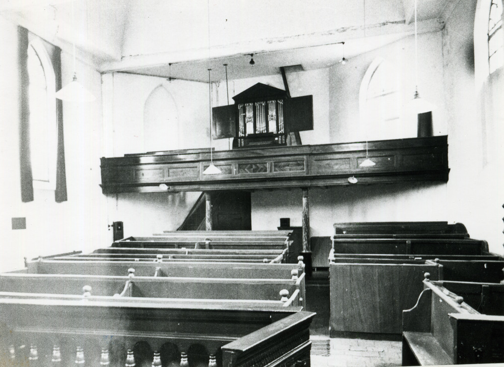 Zwart-wit foto van het interieur van de Nederlands H...