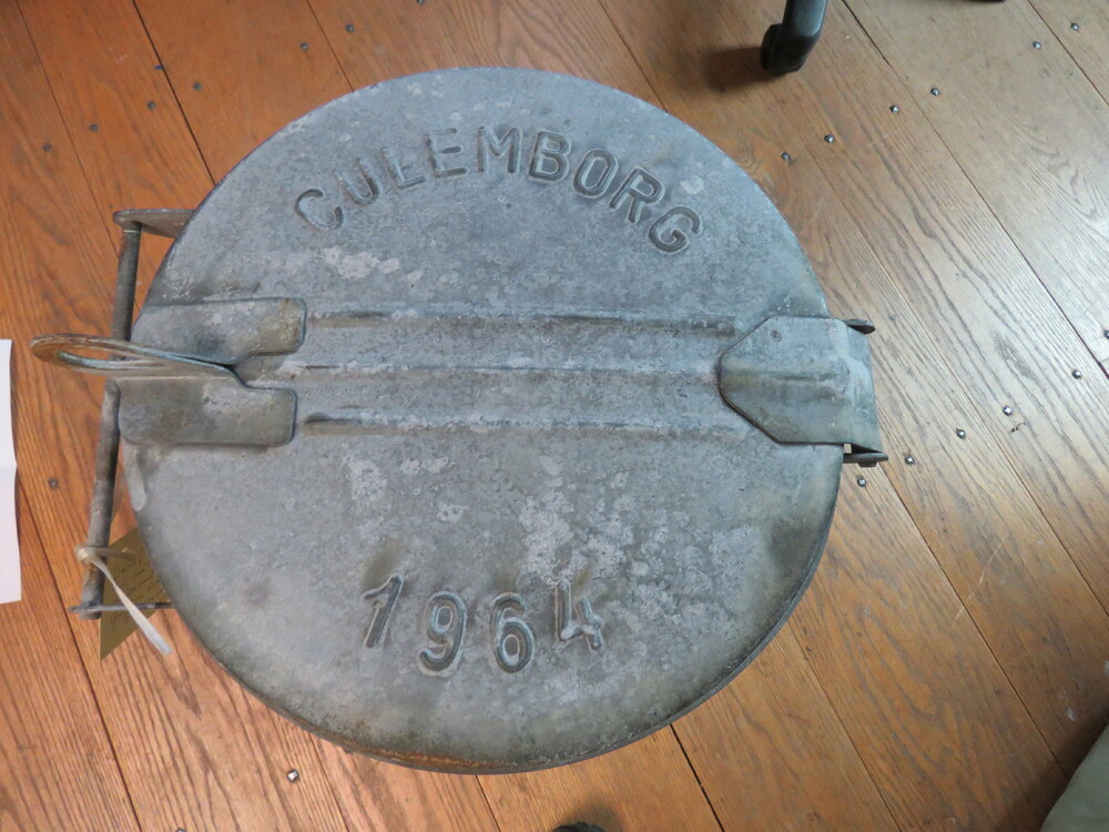 metalen emmer met klep en hengsel, Culemborg, in geb...
