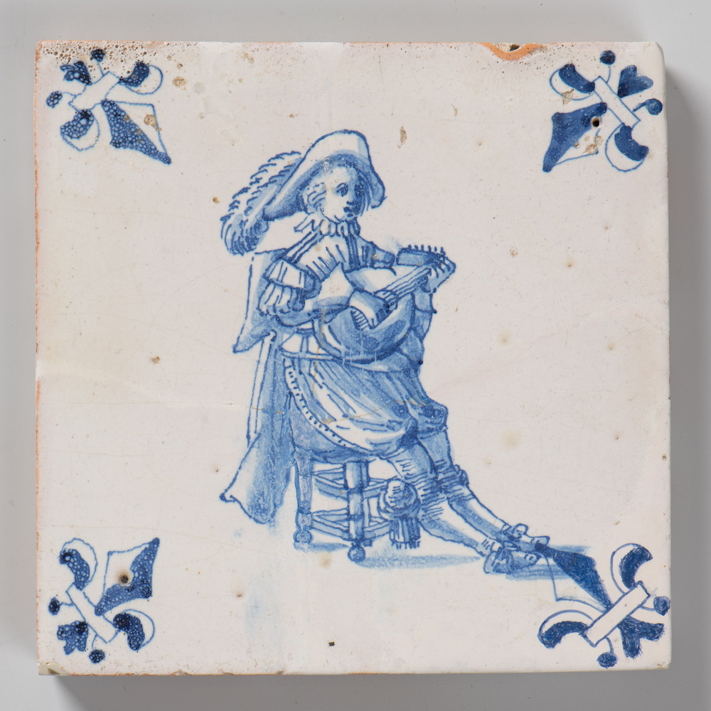 tegel van keramiek met tinglazuur, voorstellende: ma...