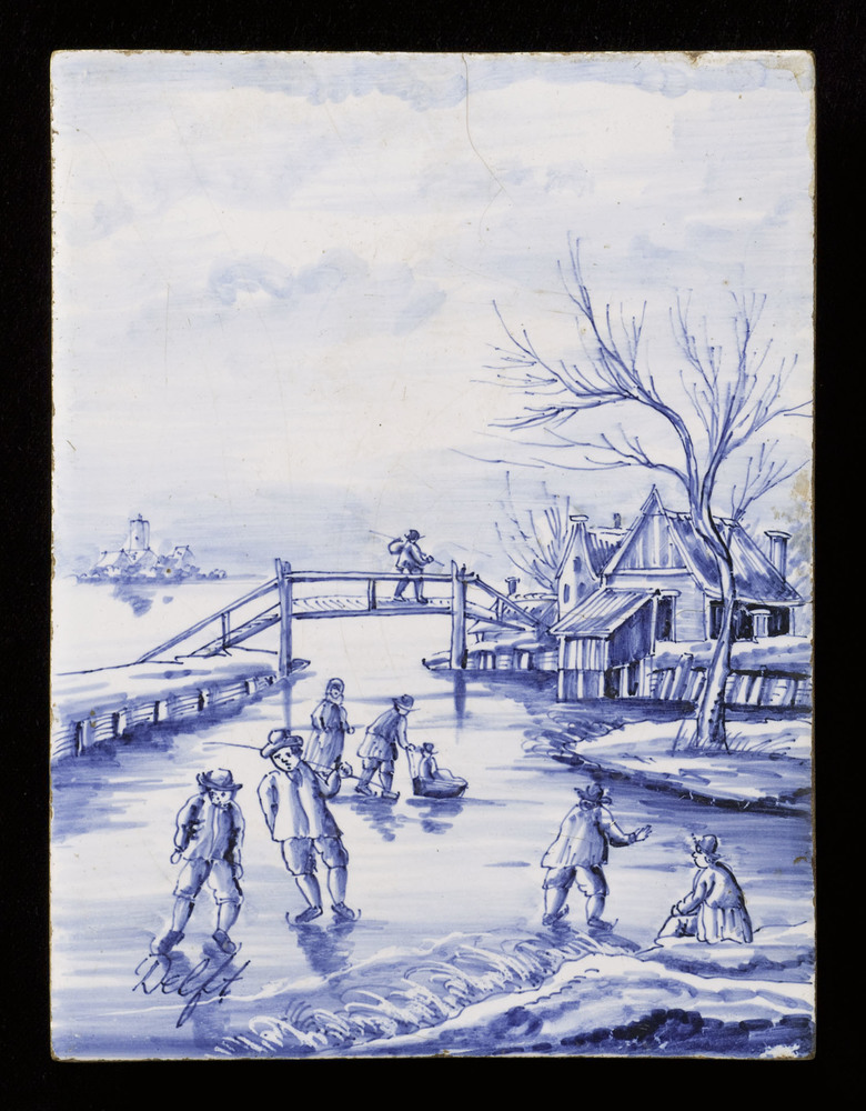 tegel van aardewerk in onderglazuur, voorstellende: ...