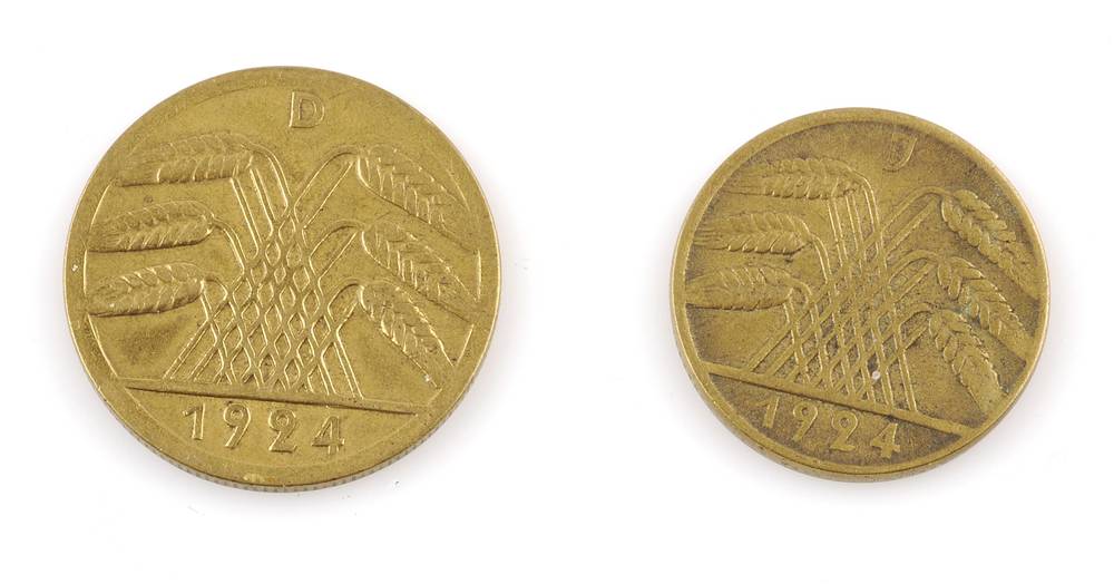 twee munten: 10 en 50 pfennig