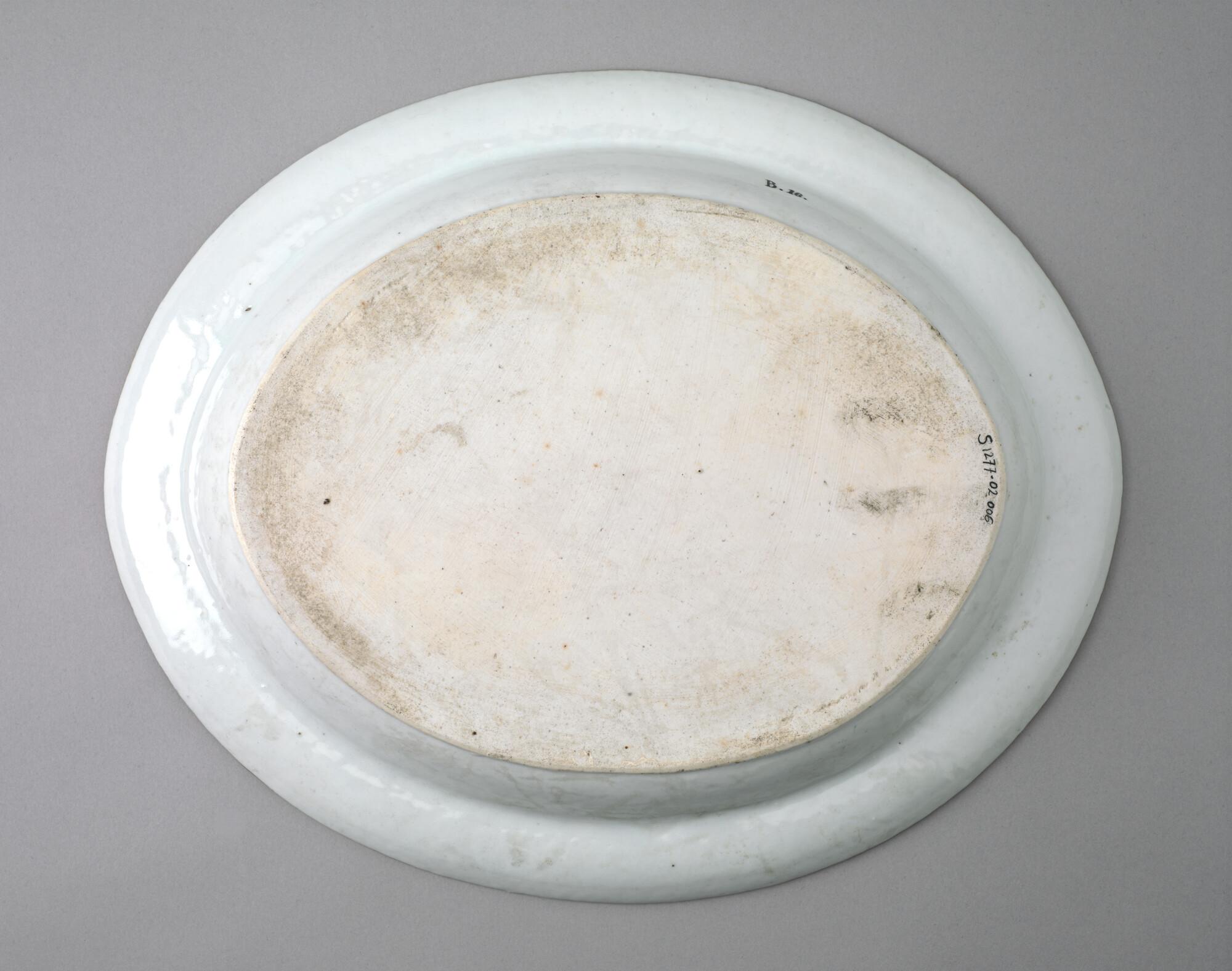 Grote, ovale schaal gedecoreerd met polychroom wapen...
