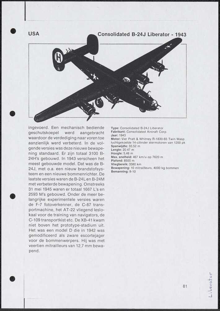 Korte beschrijving van het vliegtuig Consolidated B-...