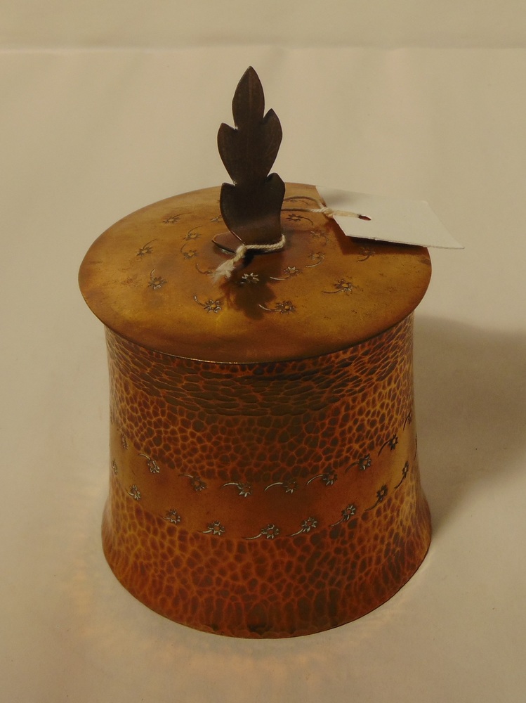 Koperen pot met deksel gemaakt van granaathuls