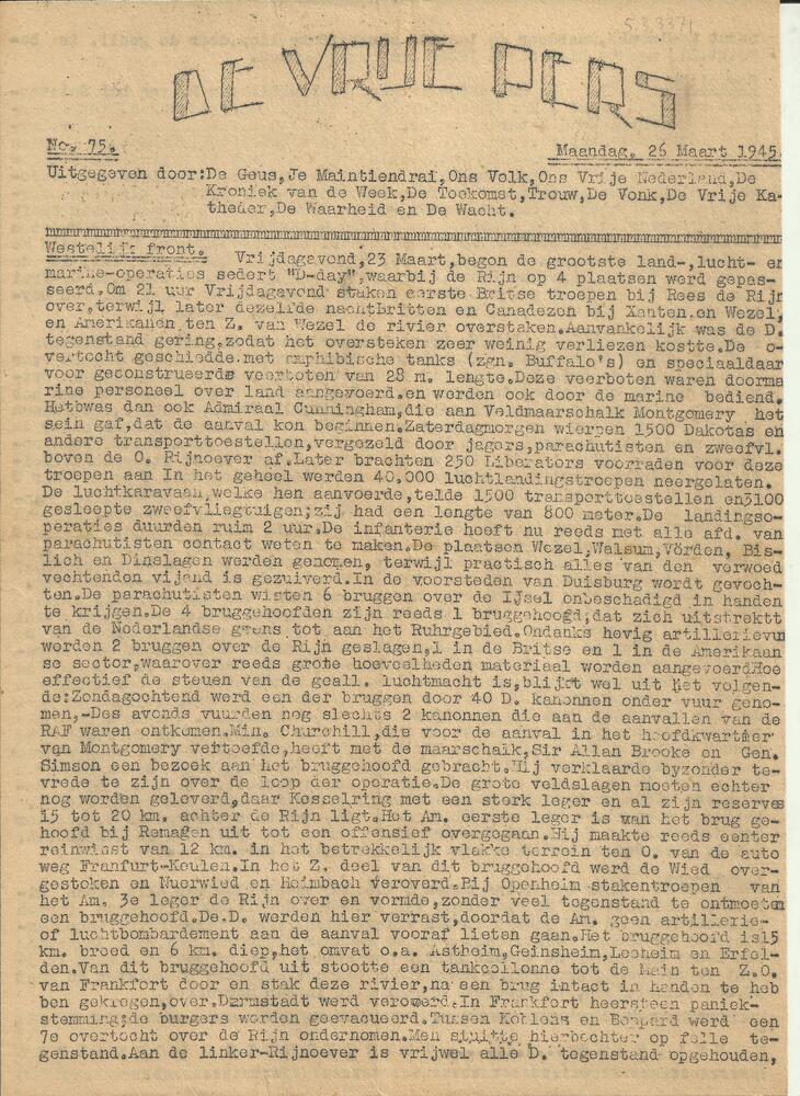 De Vrije Pers ( Haarlem ), De Vrije Pers, No. 75, 26...