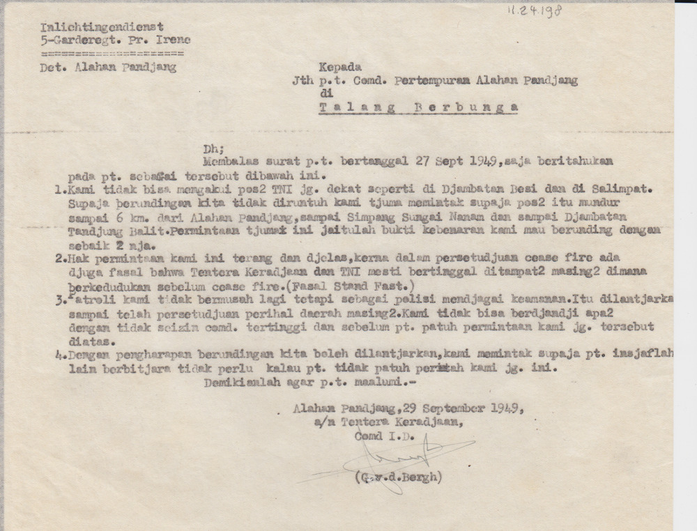 Brief van Troepencommando Tapanuli met Bevel voor de...