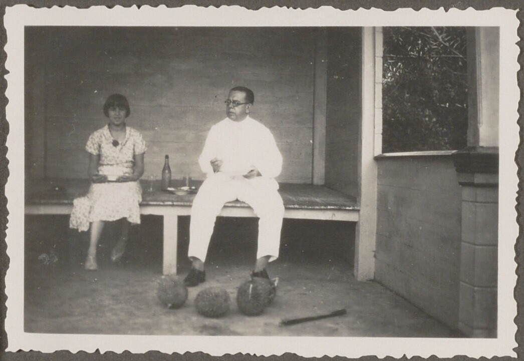 De boerenkolonist Gijsbertus Overeem met zijn vrouw ...