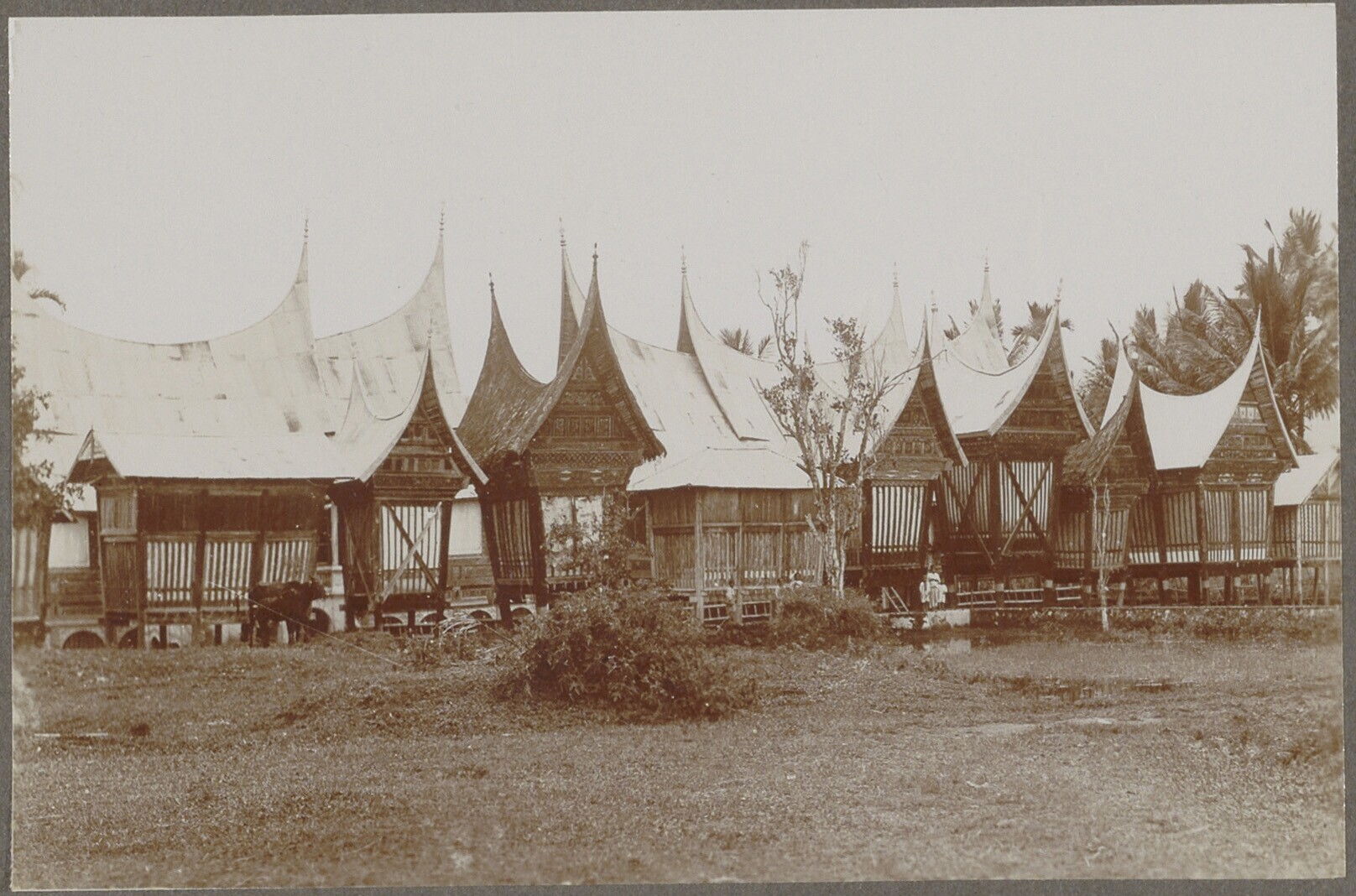 Minangkabau-huizen met daken van plaatijzer en daken...