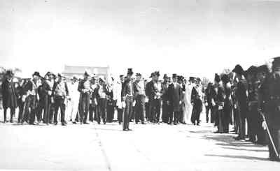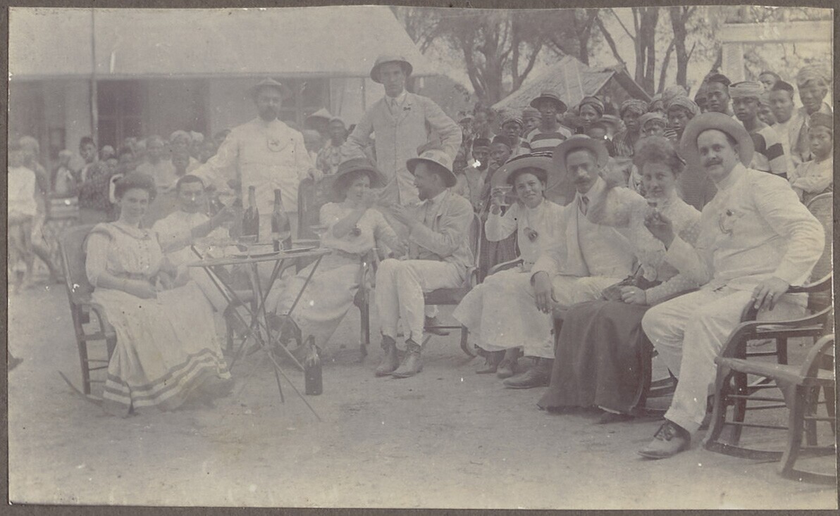 De deelnemers van de Duval-tentoonstelling poseren t...