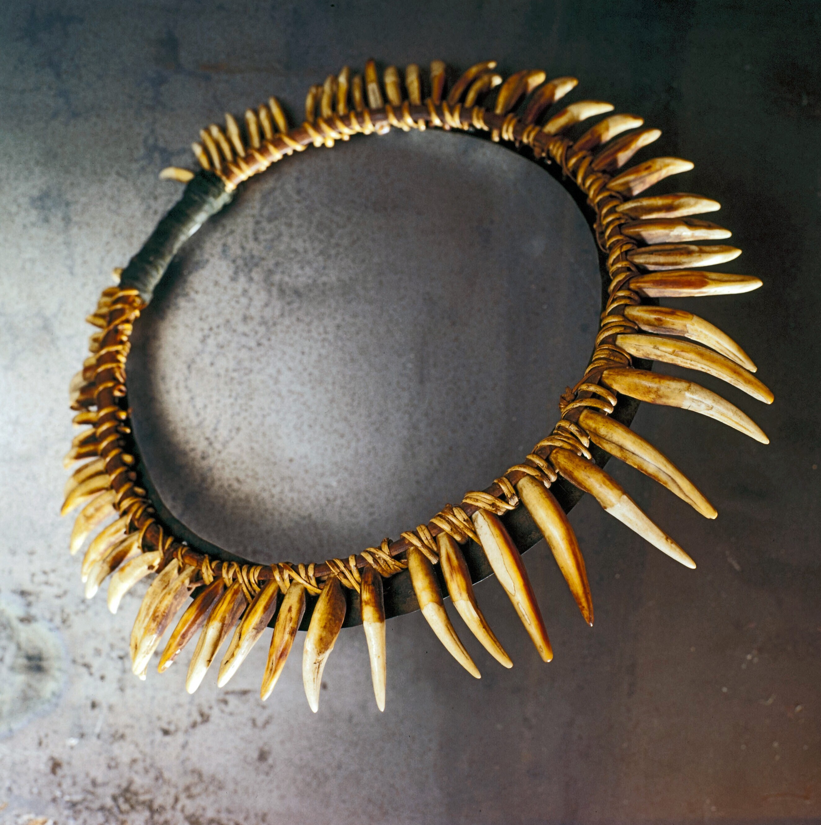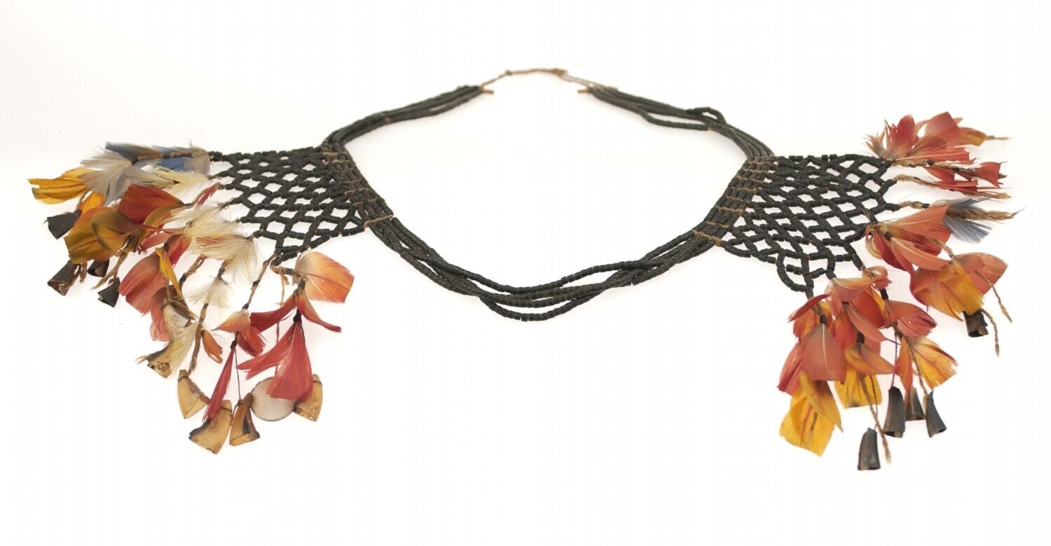 Borstsieraad van vijf bamboestaafjes aan ketting van...