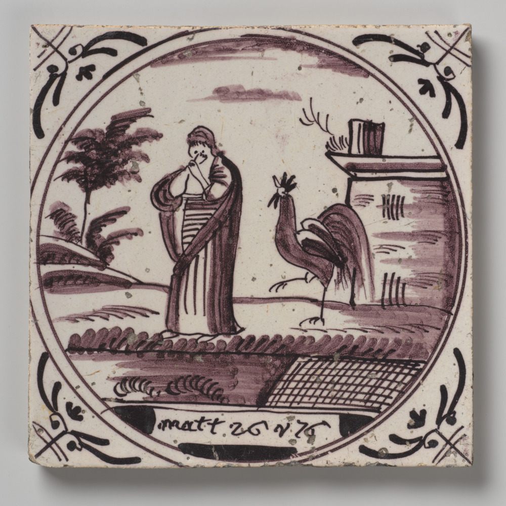 tegel van aardewerk met tinglazuur, voorstellende: P...
